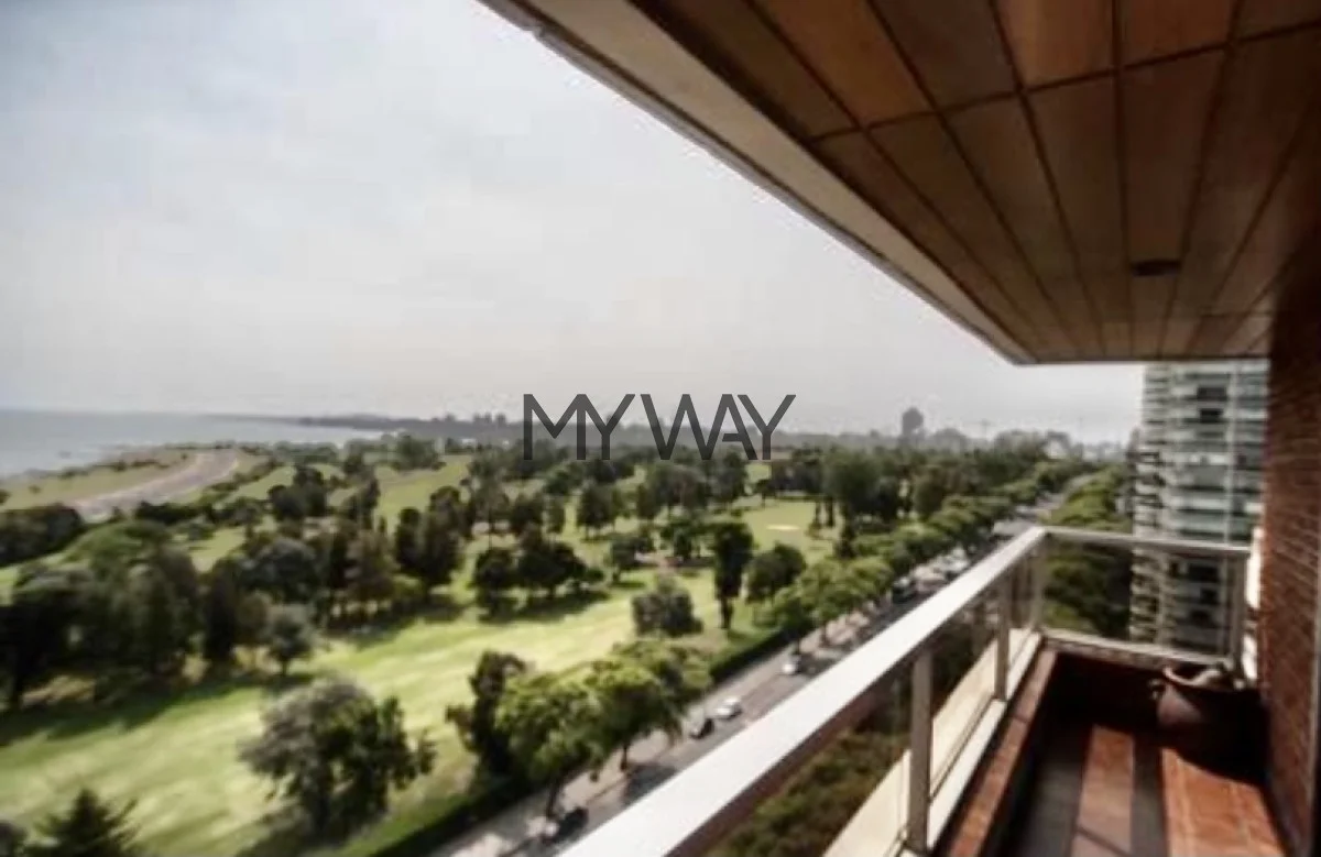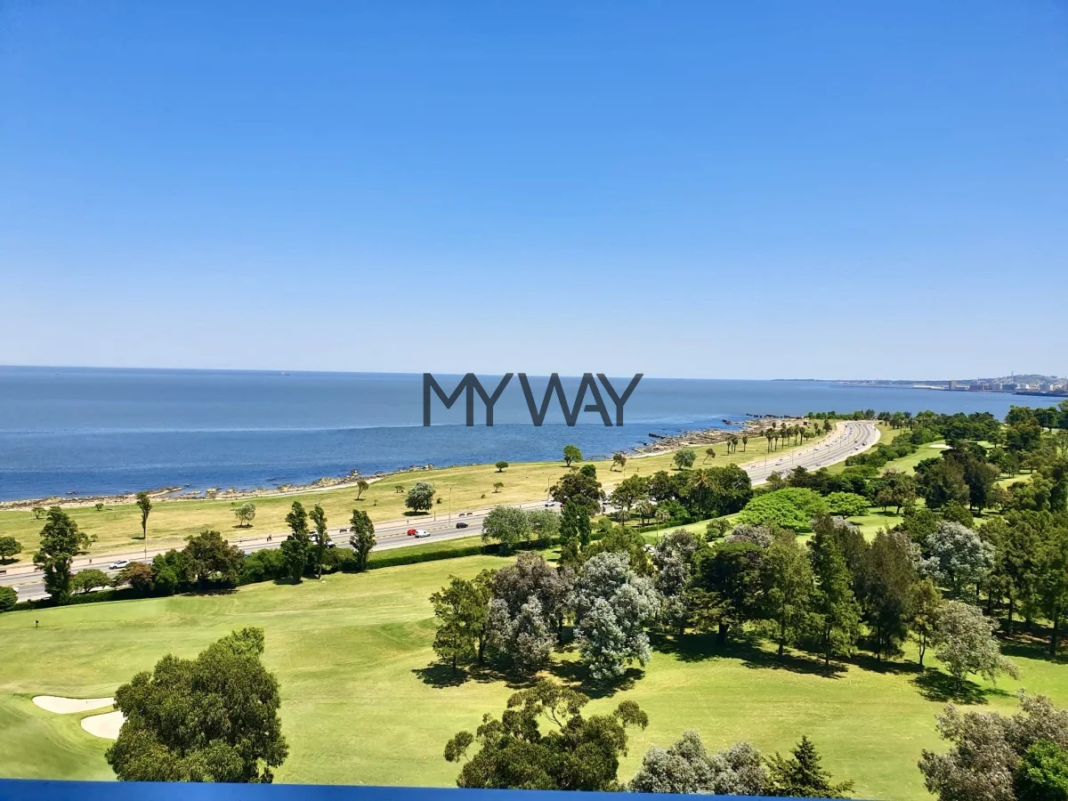 El balcón comprende todo el frente del apartamento el cual refuerza la hermosa vista de la ciudad y la belleza natural de las costas. Vista única al Club de Golf y se extendiende al horizonte, desde el Cerro de Montevideo hasta el Faro de Punta Carretas.