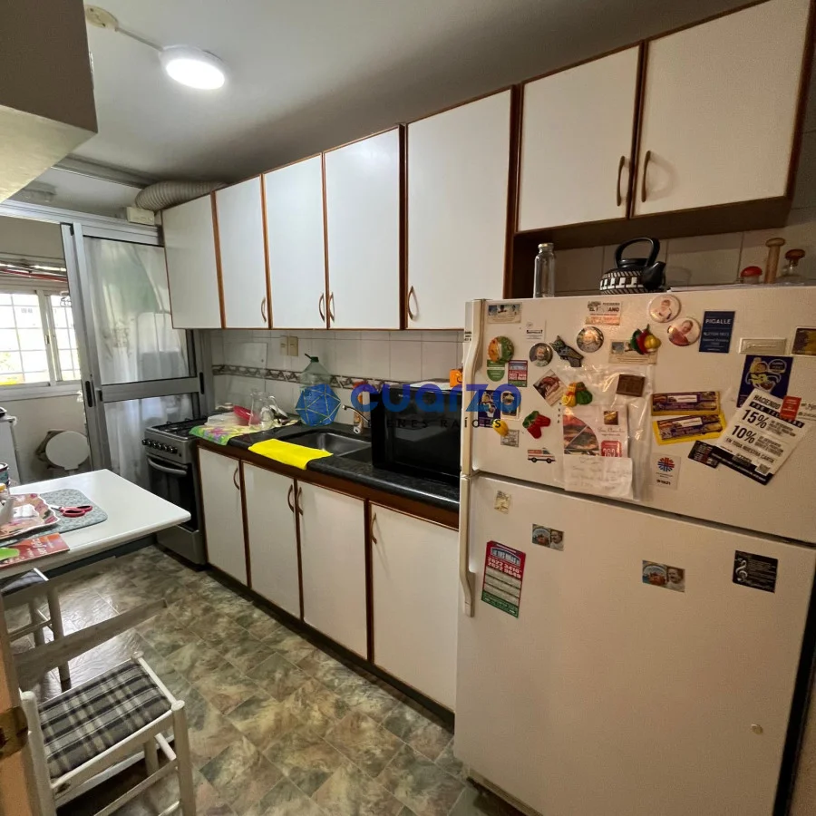 Cocina definida, con muebles sobre y bajo mesada y terraza lavadero