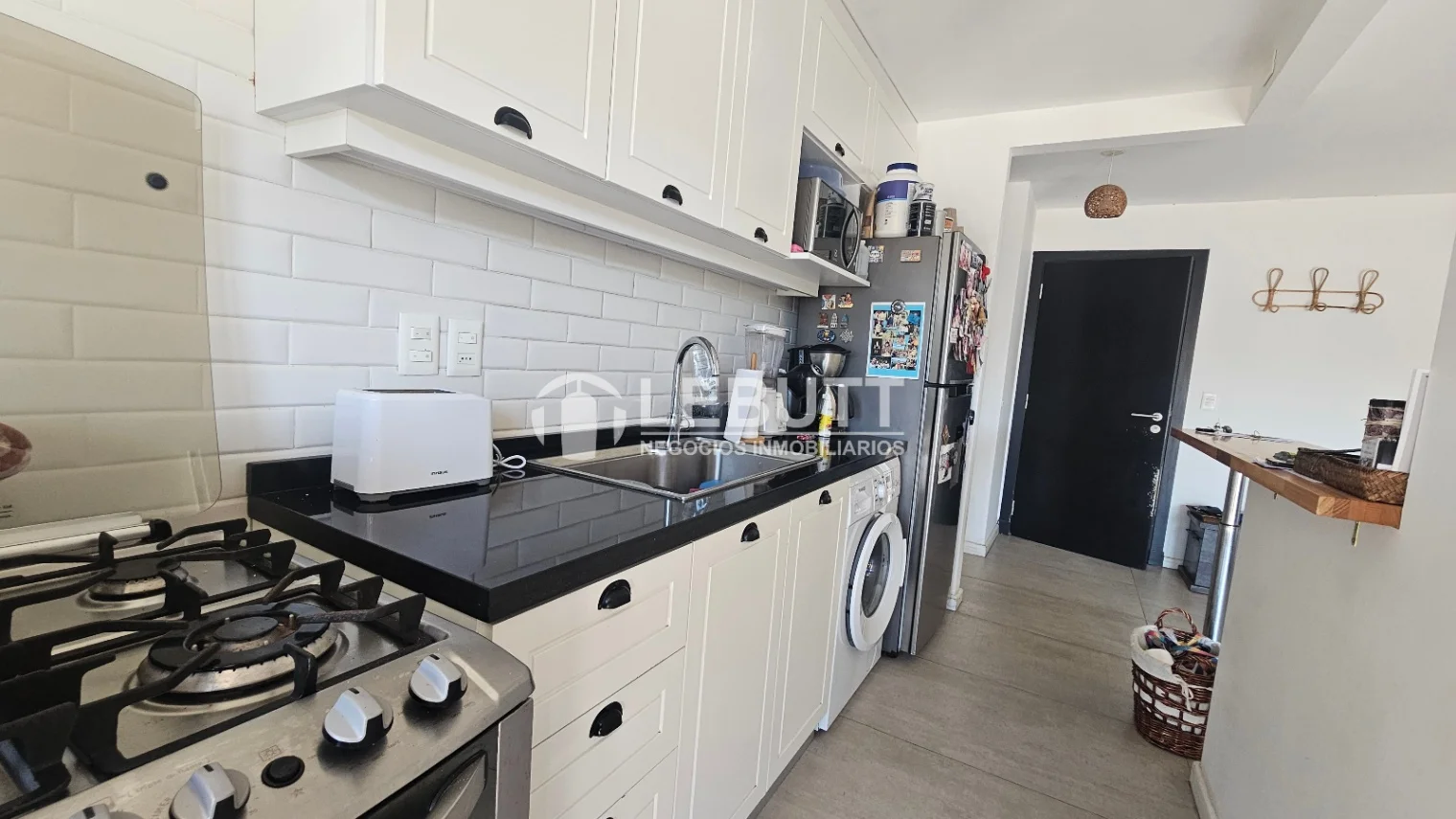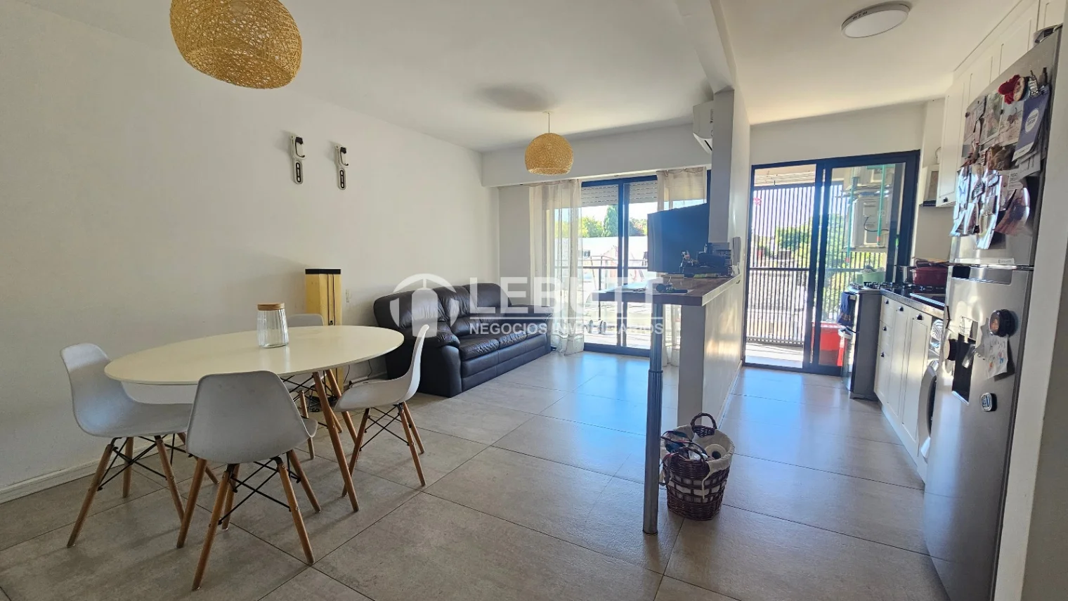 Dispone de amplio y luminoso Living Comedor con salida a Terraza con vista despejada. Cocina semi integrada con barra, placares sobre y bajo mesada. 0 Placard de buen tamaño en hall con conexión para calefón y lavarropas. 1 Dormitorio con amplio placard. Baño completo de buen tamaño con mampara de vidrio. Aire Acondicionado en Living y Dormitorio. Garaje techado.