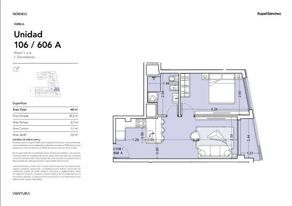 Venta apartamento 1 dormitorio al frente con garaje - La BlanqueadaVentura Nórdico - a estrenar