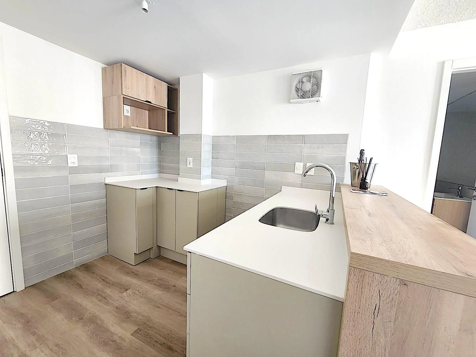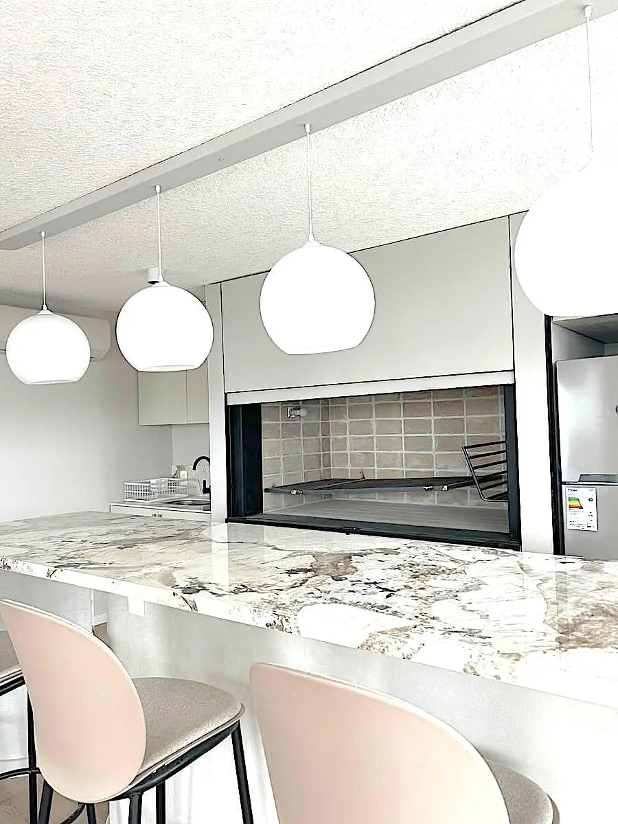 -Cocina: Placares aéreos y bajo mesadas, Mesadas de quarzo, marca Quarella, Griferías FV.
