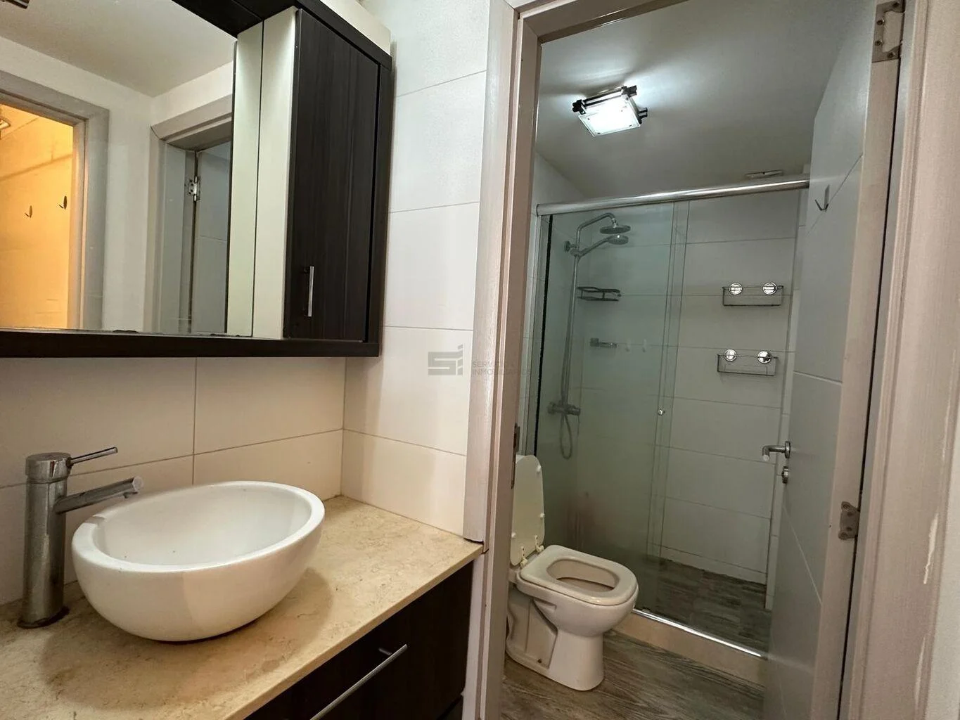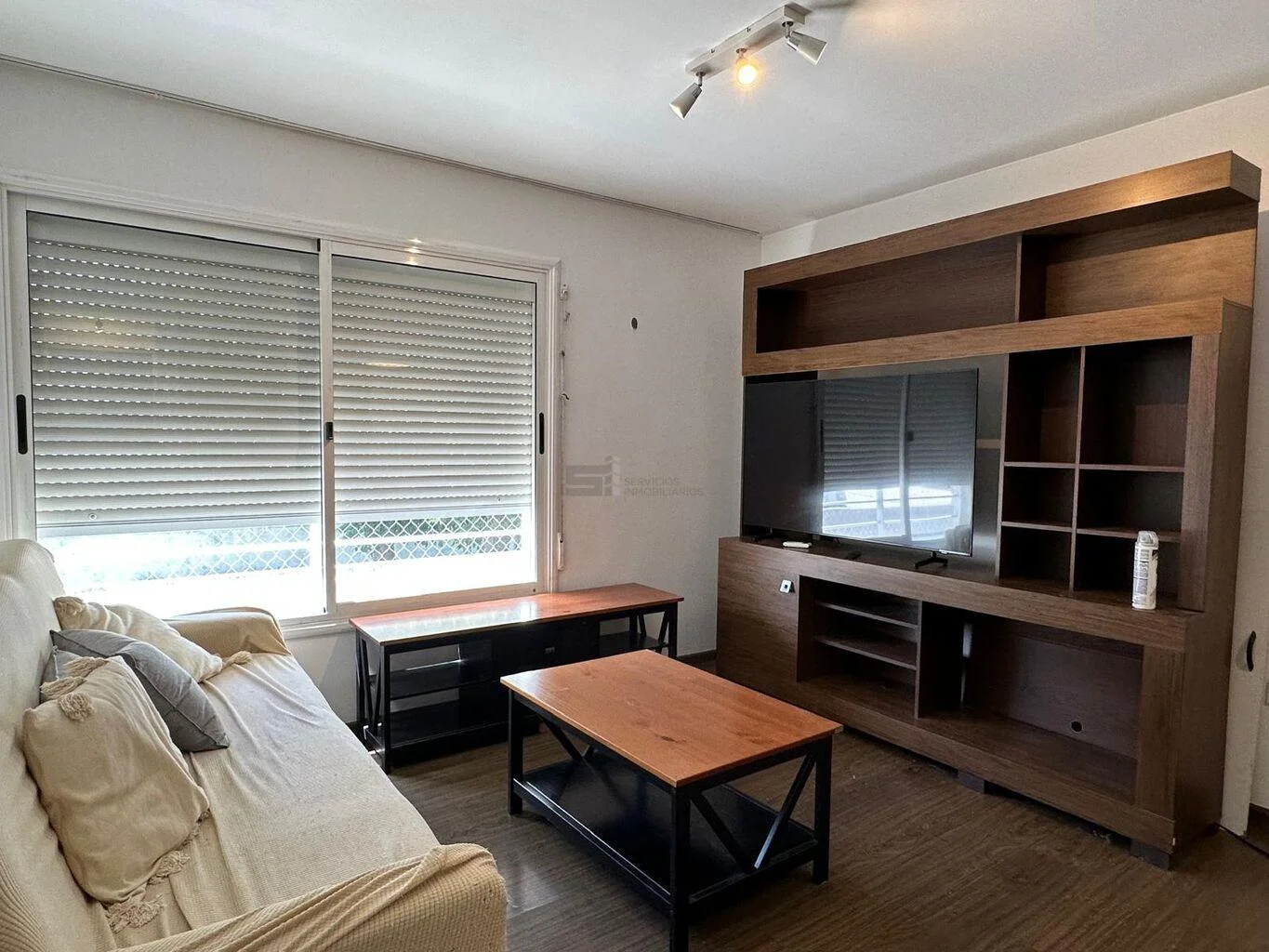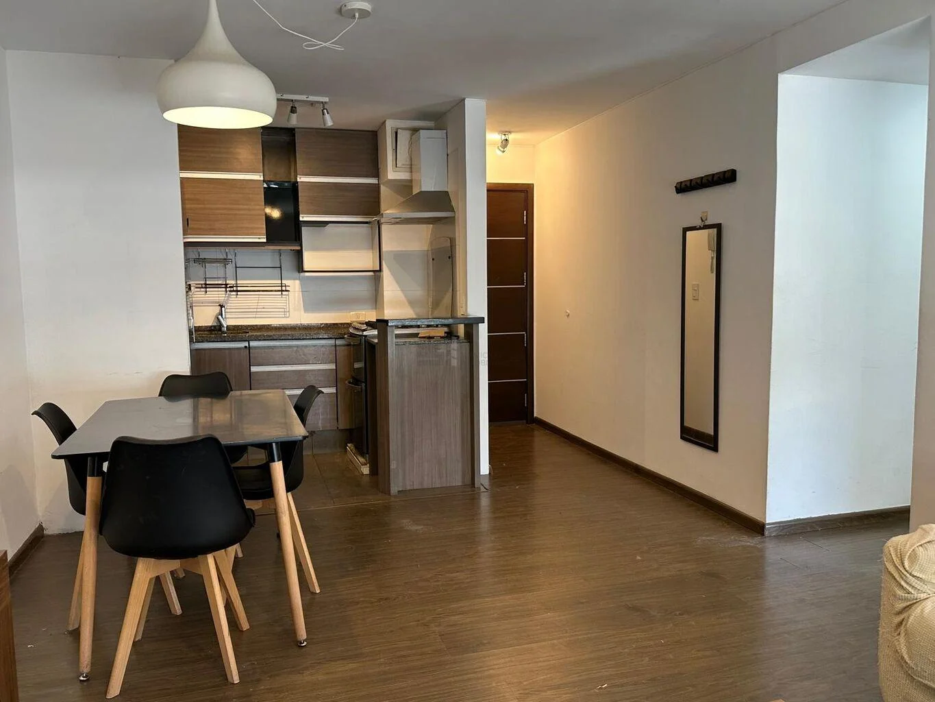 La unidad ofrece un living comedor amplio y luminoso, equipado con aire acondicionado, muebles completos y ventanales al frente. La cocina integrada se presenta moderna y funcional, con muy buen espacio de guardado, heladera, cocina y extractor.