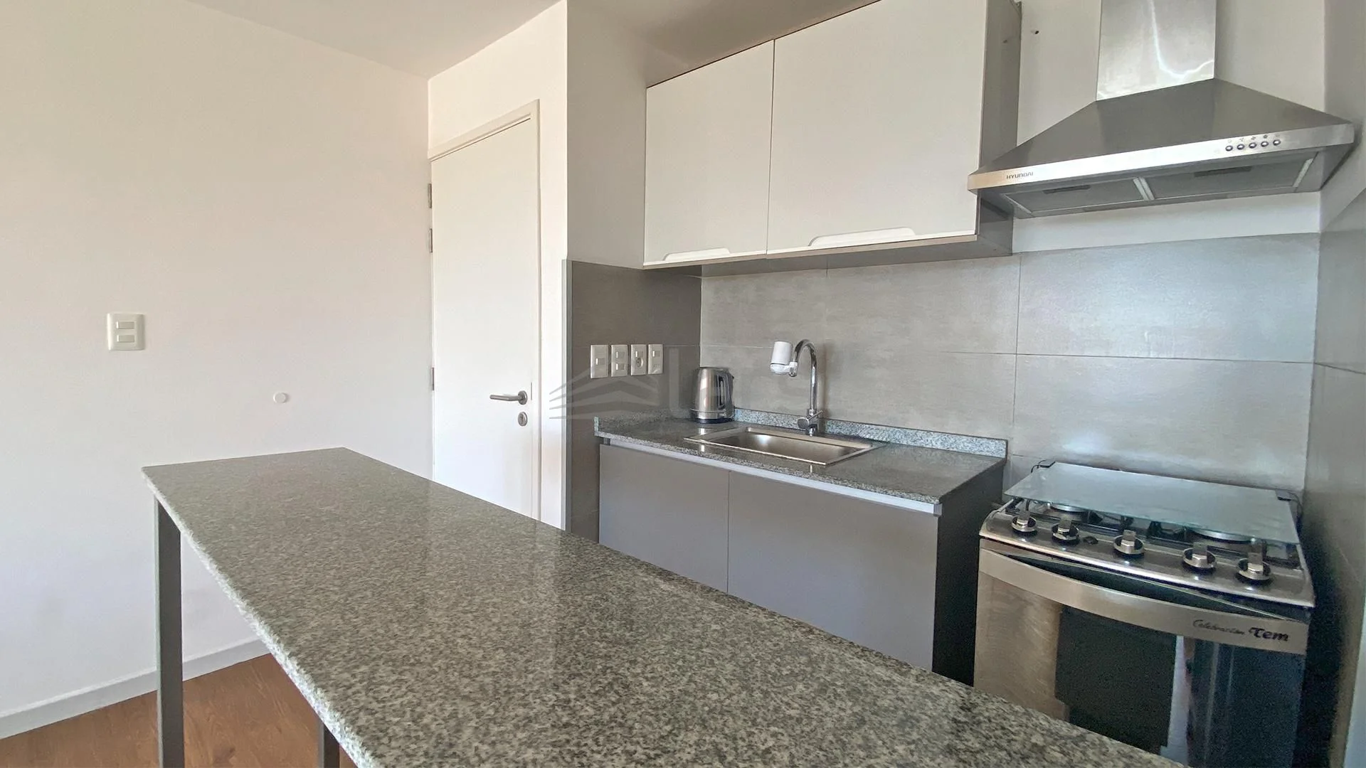 Propiedad contrafrente en 3° piso, living comedor y cocina integrada, dormitorio con acceso a terraza y baño. El edificio cuenta con jardín, área de esparcimiento, ascensor, SUM y vigilancia 24 h.