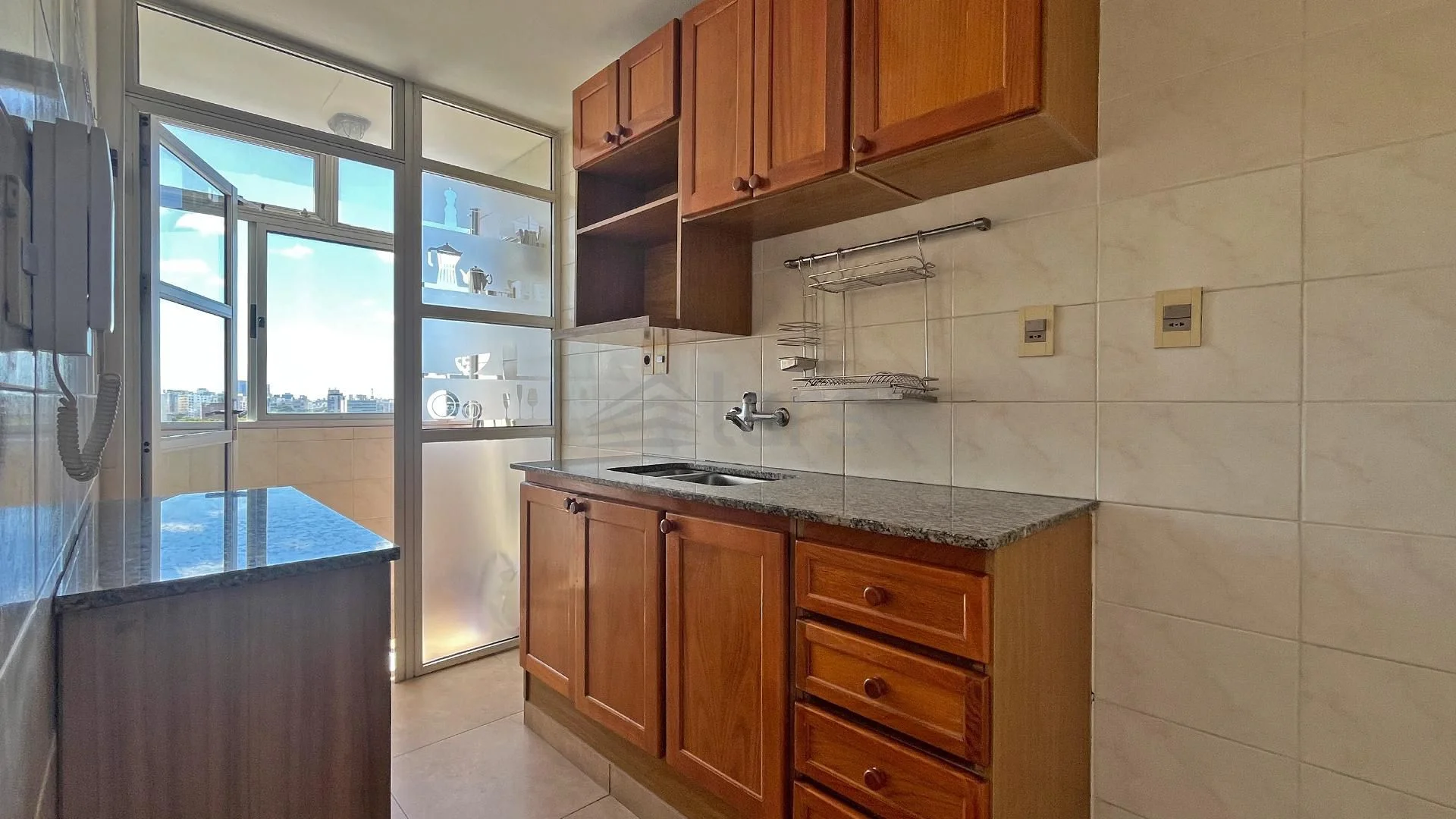 Propiedad contrafrente en 10° piso, living comedor, 2 dormitorios, cocina definida, baño y terraza lavadero. El edificio cuenta con ascensor, SUM, parrillero al aire libre, solárium y cámaras de videovigilancia.