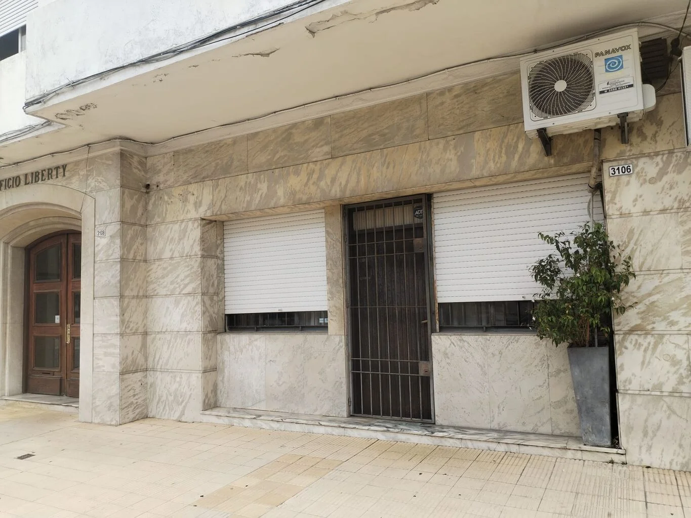 La planta alta está orientada al norte, la puerta de calle tiene portón de reja y hay hacia el frente dos amplios ventanales con persianas y reja.