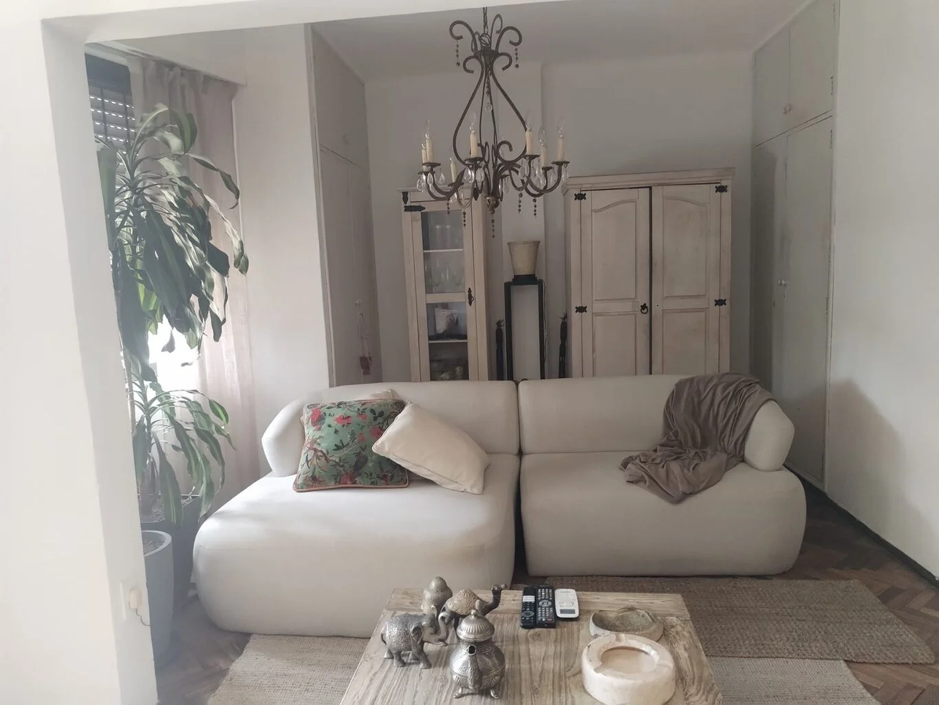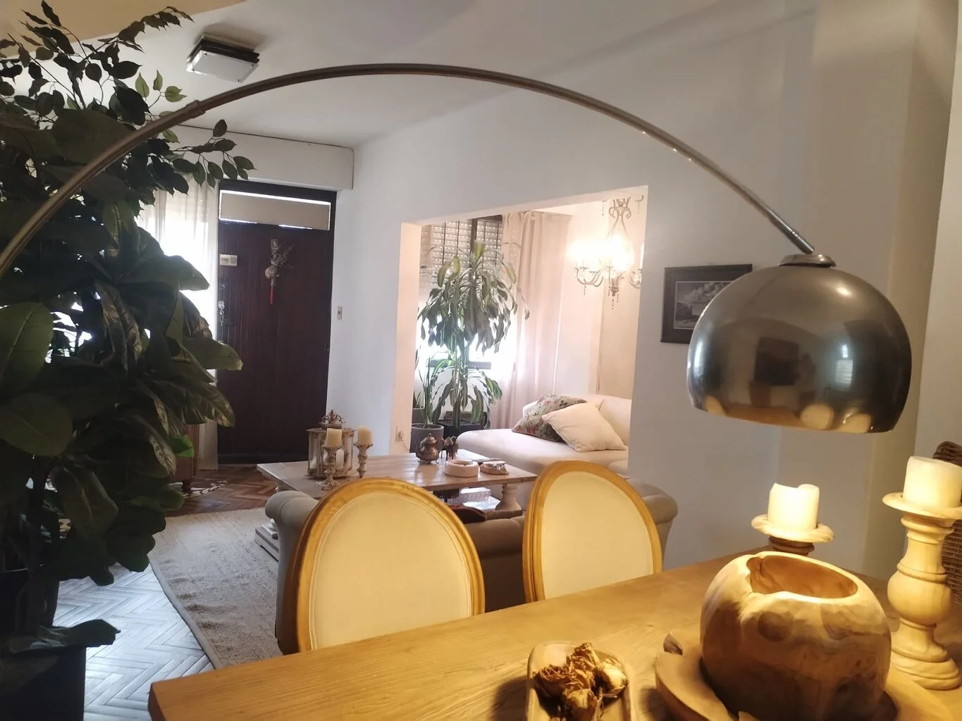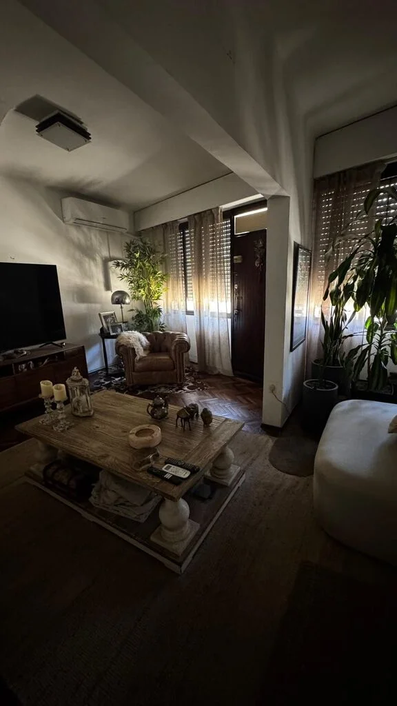 Es un apartamento independiente con características de casa, en la planta baja de un sólido edificio de época. El apartamento está reciclado a nuevo y perfectamente mantenido con un solo dormitorio, al que se accede bajando una escalera, es de gran tamaño, ocupa toda la planta baja y cuenta con un espacio para vestidor. Brinda la posibilidad de cerrar ambientes comunes y habilitar dos dormitorios más arriba, uno con ventana a la calle, si es para una familia con chicos.