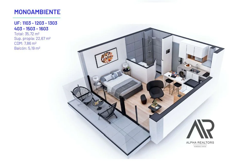 Apartamentos en construcción Mono, 1 dorm. y 2 dorm.