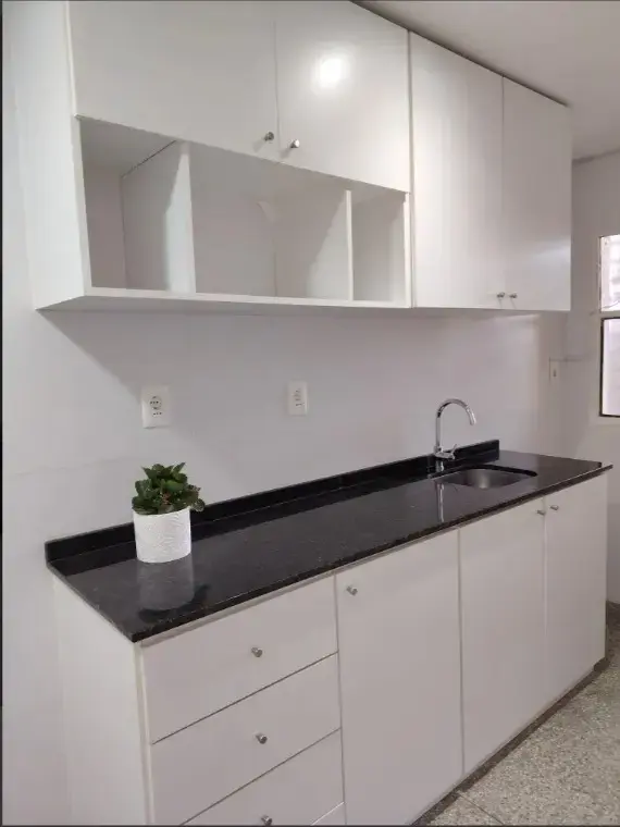 Cocina semi definida con muebles aéreos y bajo mesada, y terraza lavadero techada.