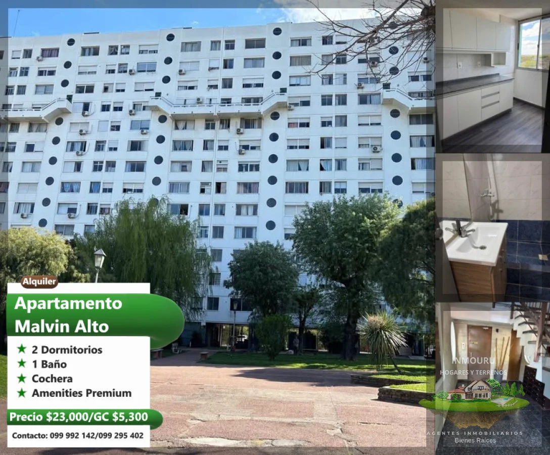 Ubicacion: Camino Carrasco Malvin Alto - Malvin Norte - Montevideo 2 Dormitorios 1 Baño Tiene cochera No acepta mascotas Garantias Anda o contaduria Alquiler $23,000 Gastos Comunes $5,300 Honorarios Profesionales: 1 Mes Alquiler + IVA Agente: Valeria Referencia Interna : Tera-2069