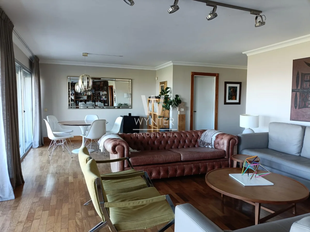 La unidad cuenta con 4 dormitorios (el principal al frente en suite con vestidor), 3 baños, gran living comedor con muy buena vista a la Rambla, terraza, estar , cocina definida con mucho lugar de guardado, y dependencia de servicio.