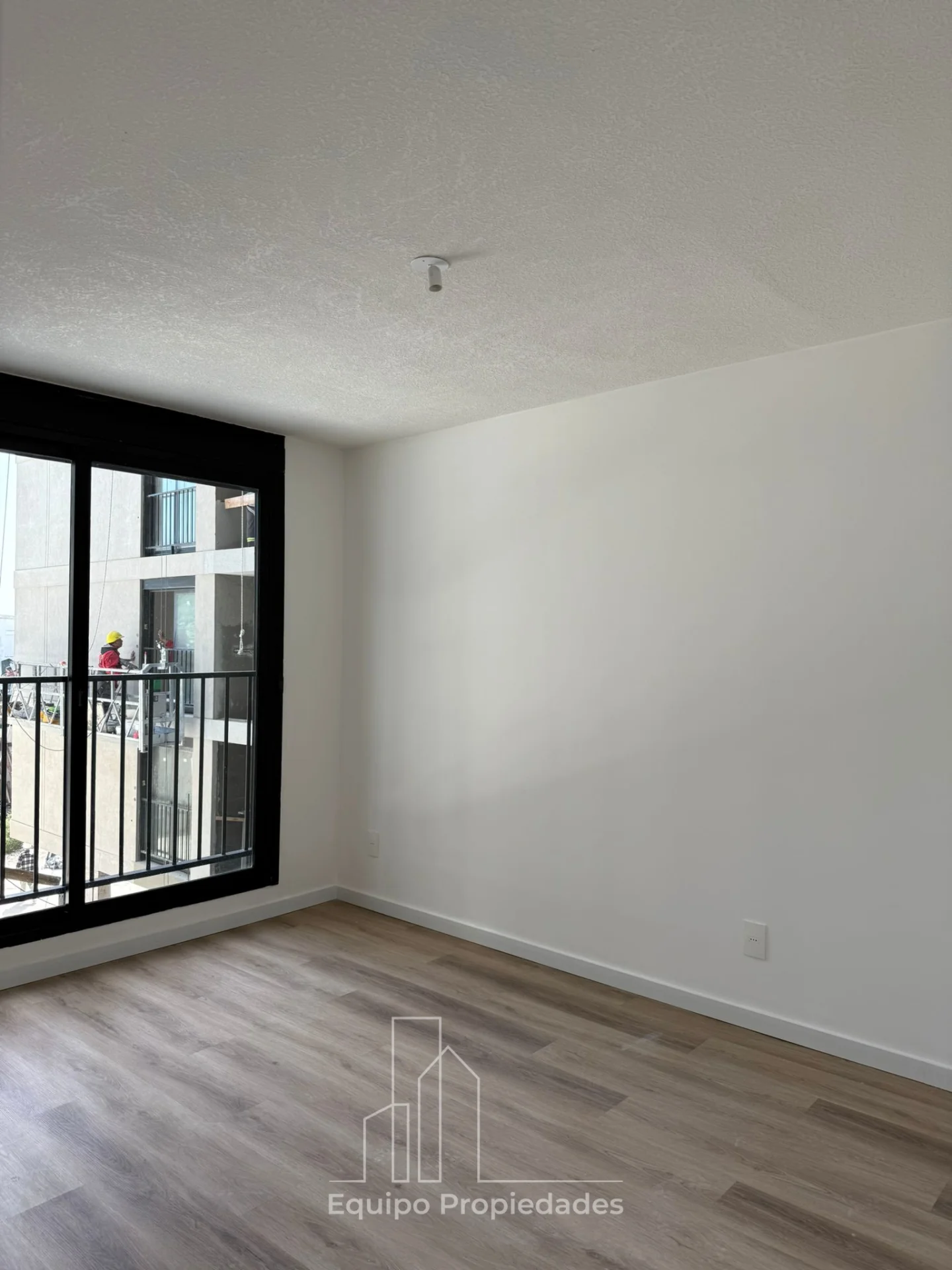 Equipado con persiananas eléctricas en living y dormitorio, extractor en cocina y muebles en cocina y baño.