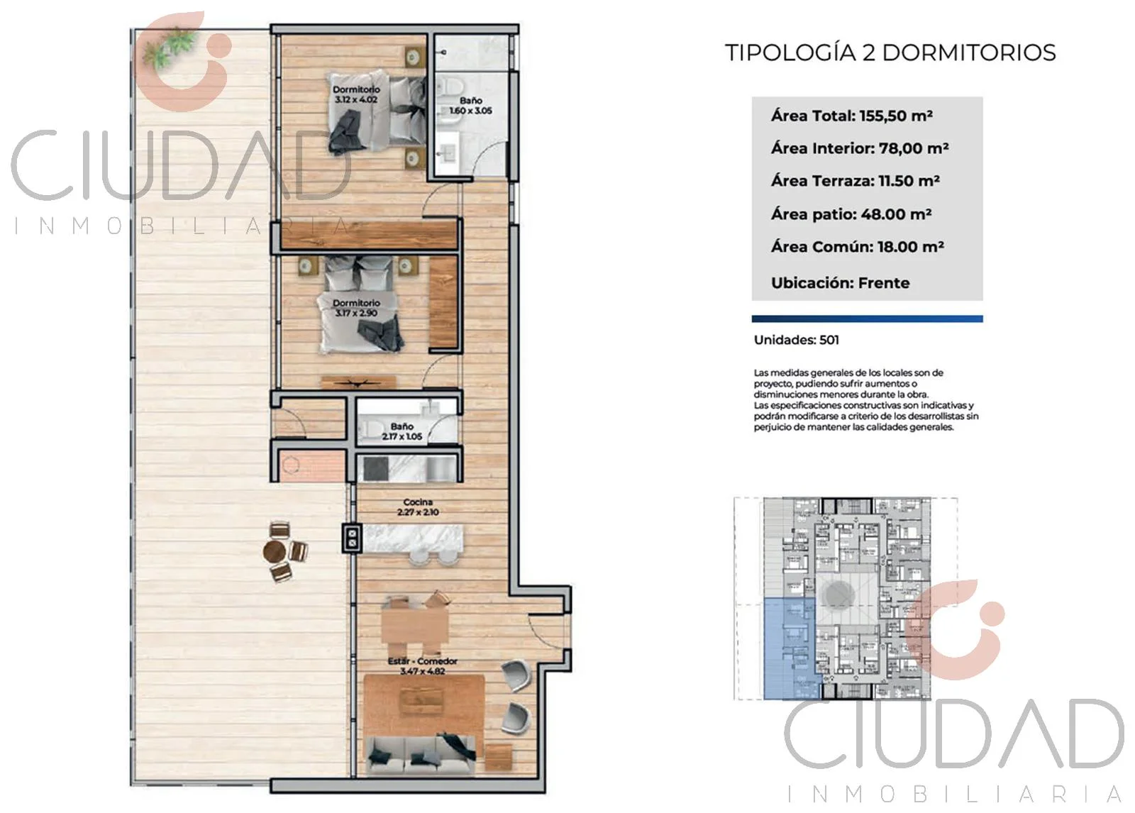 - 2 Dormitorios