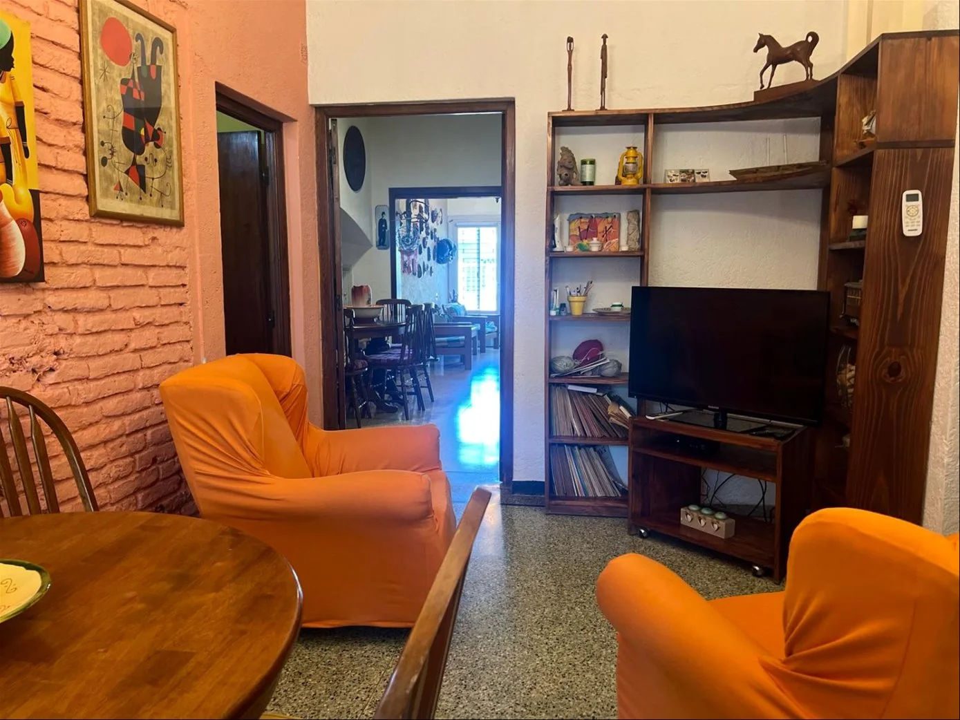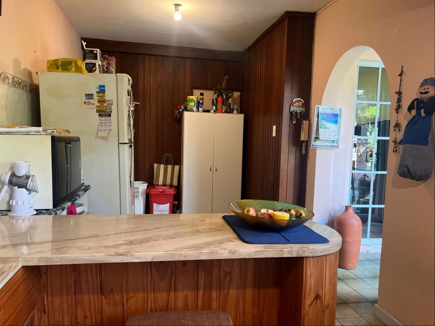SÓLIDA CONSTRUCCIÓN TODA EN UNA PLANTA CON AMPLIO FONDO VERDE Y COCHERAS CON CERRAMIENTO PERIMETRAL.