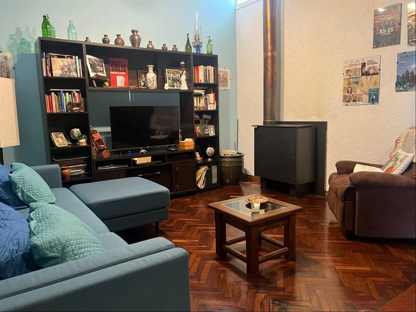 LIVING CON HOGAR, ESTAR DIARIO CON ESTUFA DE ALTO RENDIMIENTO,COCINA DEFINIDA YESCRITORIO.