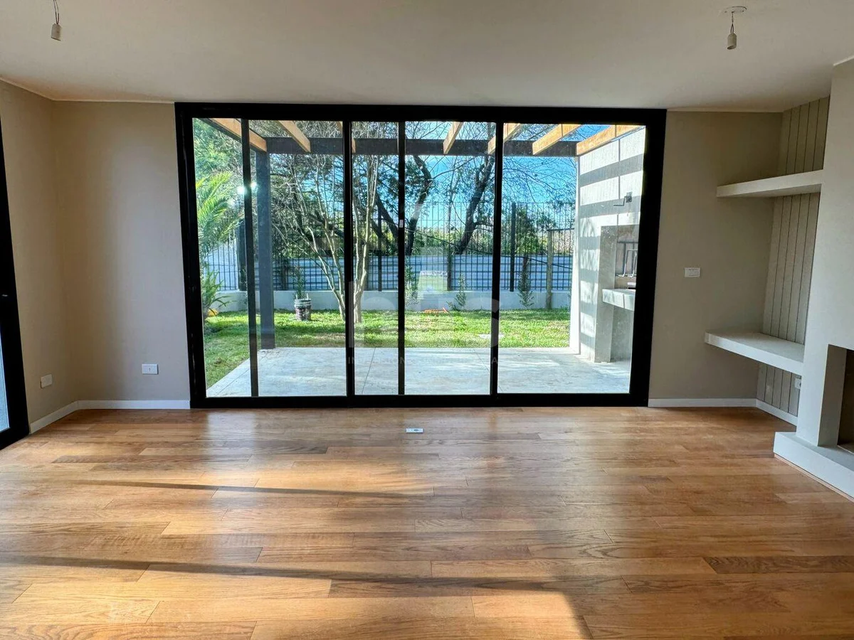 Casa a estrenar en housing privado con jardín y parrillero privado. Living-comedor con cocina integrada, baño social y salida directa al jardín y parrillero. En planta alta tres dormitorios y dos baños, principal en suite. Calefacción por losa radiante a gas, doble vidrio en todas las aberturas y muy buenas terminaciones. Gran piscina de uso común, predio cerrado y seguridad 24hs.