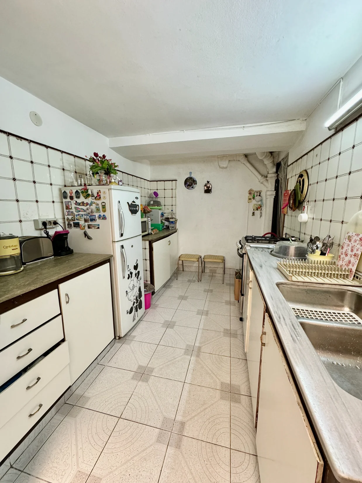 En Planta Baja encontramos el Zaguán, Recibidor de 5,00 x 3,20, Living comedor de 8,30 x 3,80, Baño social completo, y Cocina definida con varias mesadas. Asimismo posee entrepiso con habitación de servicio de 2,20 x 2,30, baño y claraboya.