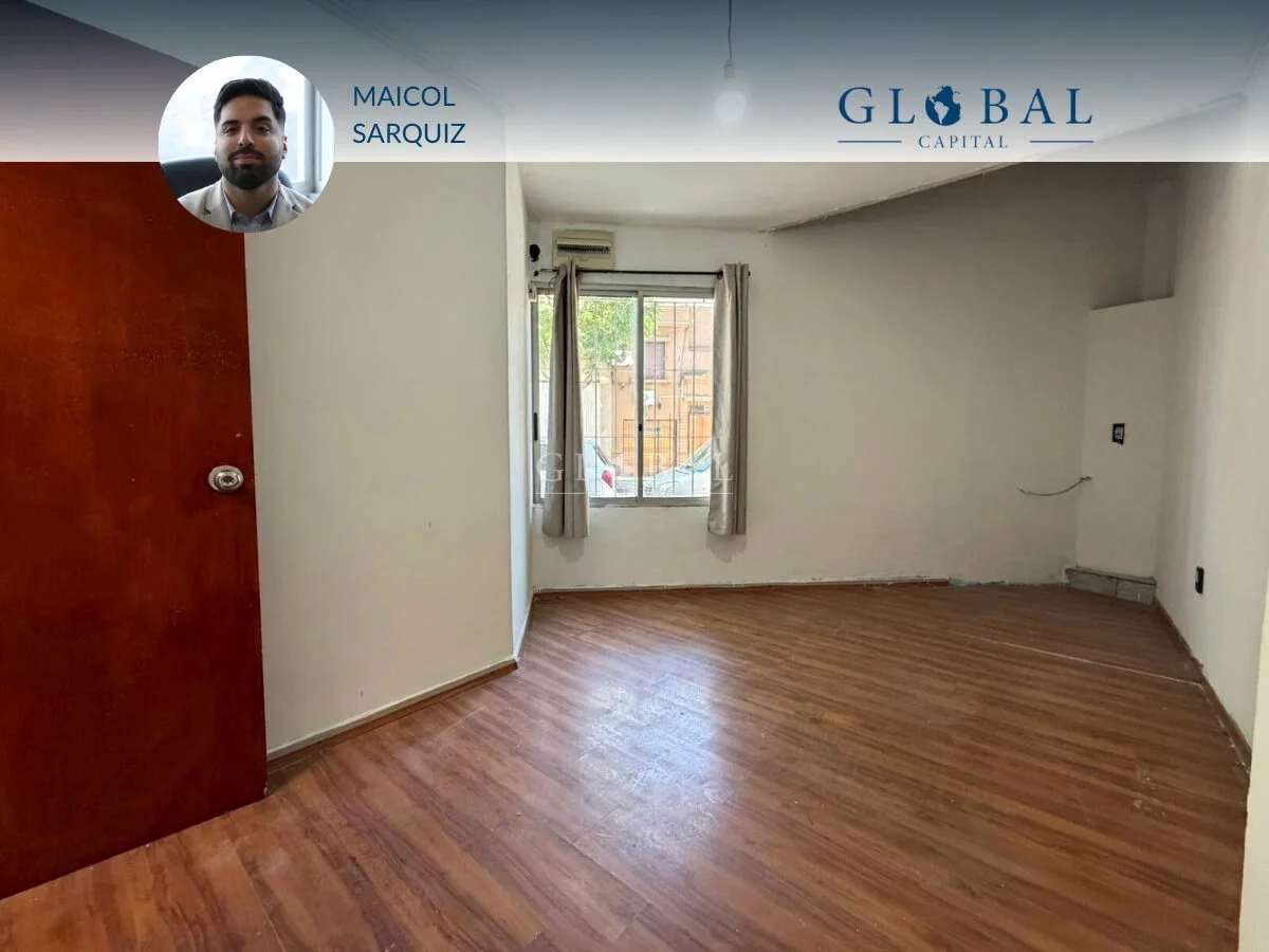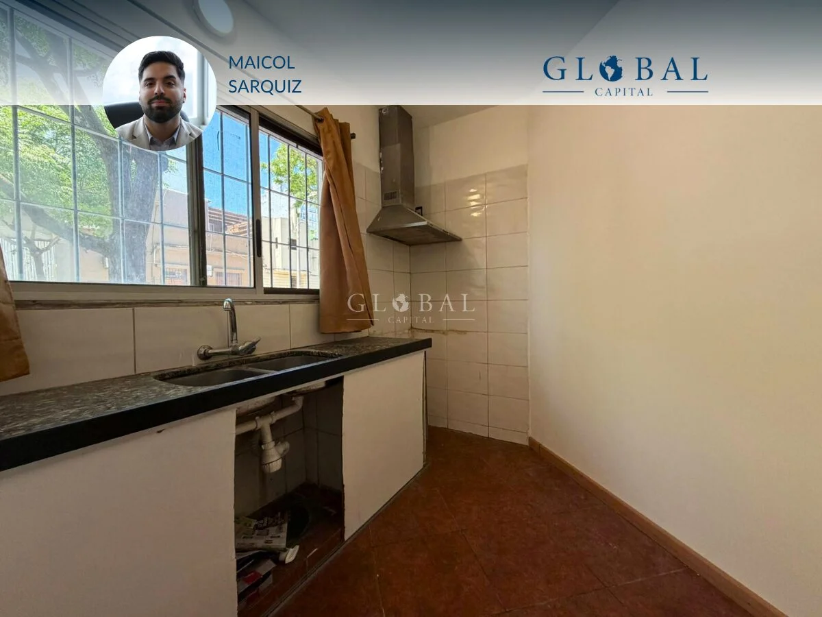 En planta baja se encuentran dos dormitorios, ambos al frente y con iluminación natural; uno de ellos cuenta con placard. En esta misma planta se ubica un baño completo y la cocina definida, también al frente, cuyo bajo mesada será reparado.
