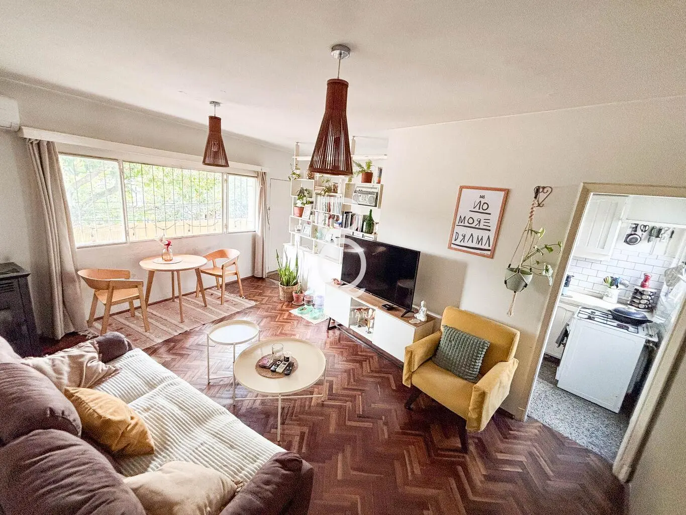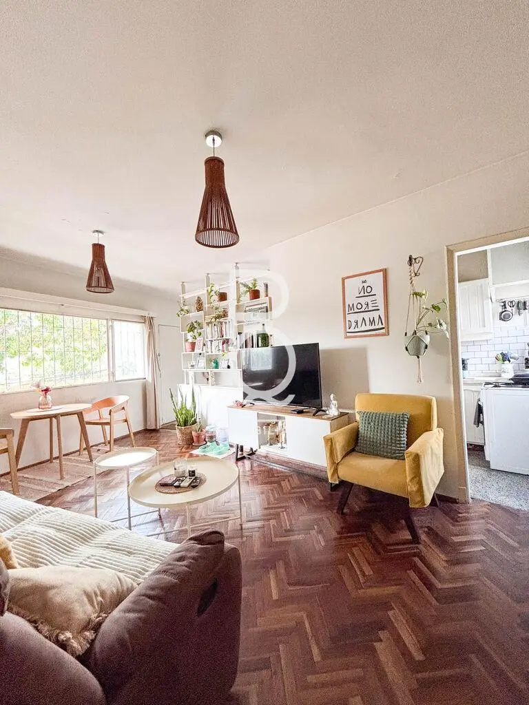 Ingreso al living comedor de 5,20 x 3.60 mts con pisos de parque, estufa de pelet y aire acondicionado. Grandes ventanales y salida hacia la terraza al frente de 10 m2. Orientación NE.