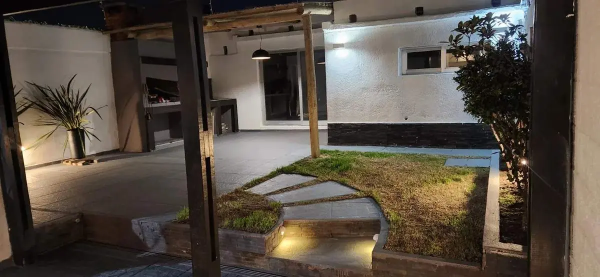 La casa se compone de 4 ambientes, incluyendo 2 dormitorios y 2 baños, además de una amplia cocina que se integra con el living y el comedor. Destacan sus comodidades como aire acondicionado, calefacción, internet, y un sistema de alarma que garantiza la seguridad de sus ocupantes. El exterior cuenta con un hermoso jardín y un patio, ideales para disfrutar de momentos al aire libre, así como una parrilla para reuniones familiares y con amigos. La propiedad también permite mascotas, brindando un ambiente acogedor para todos los miembros de la familia.