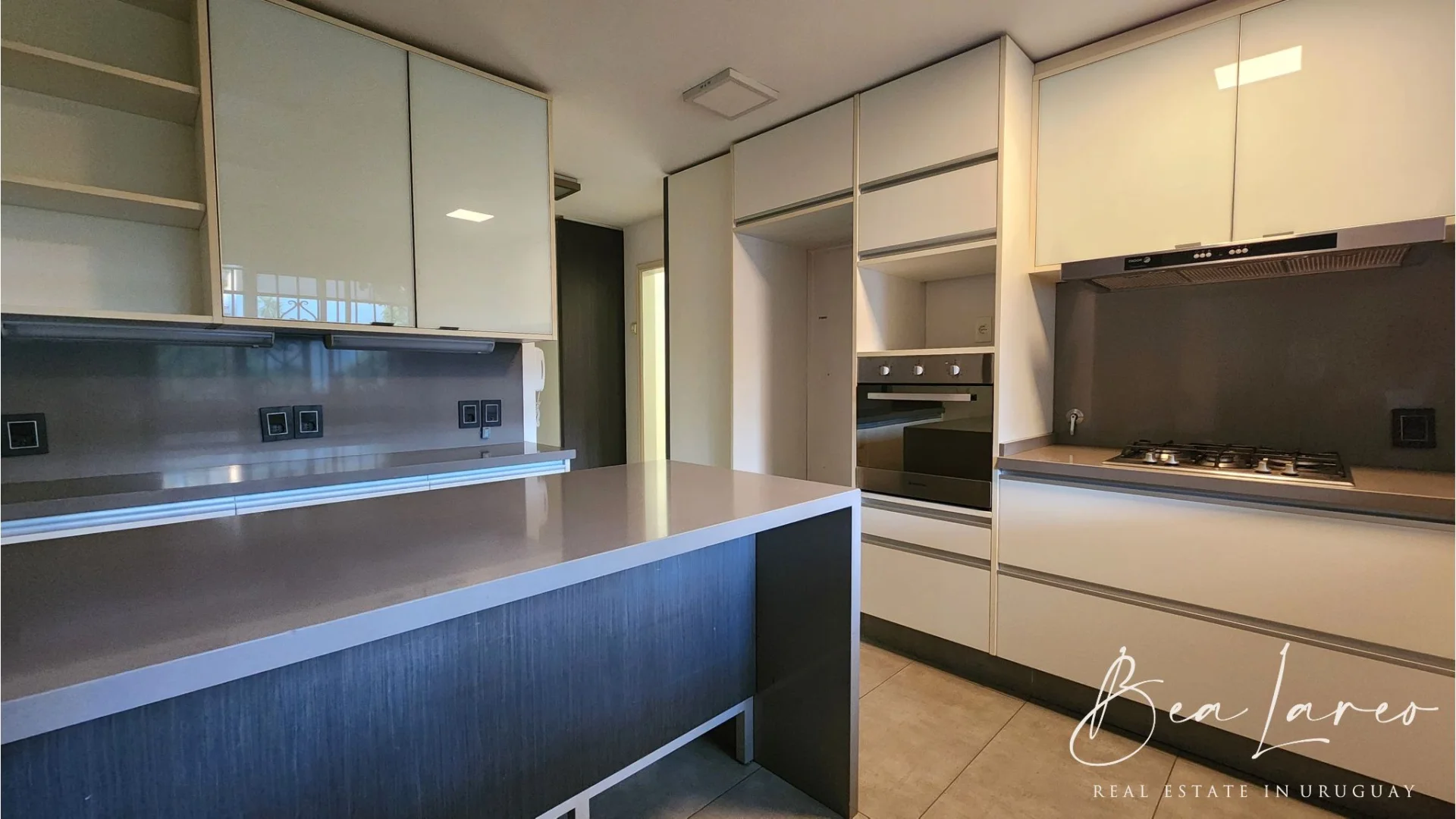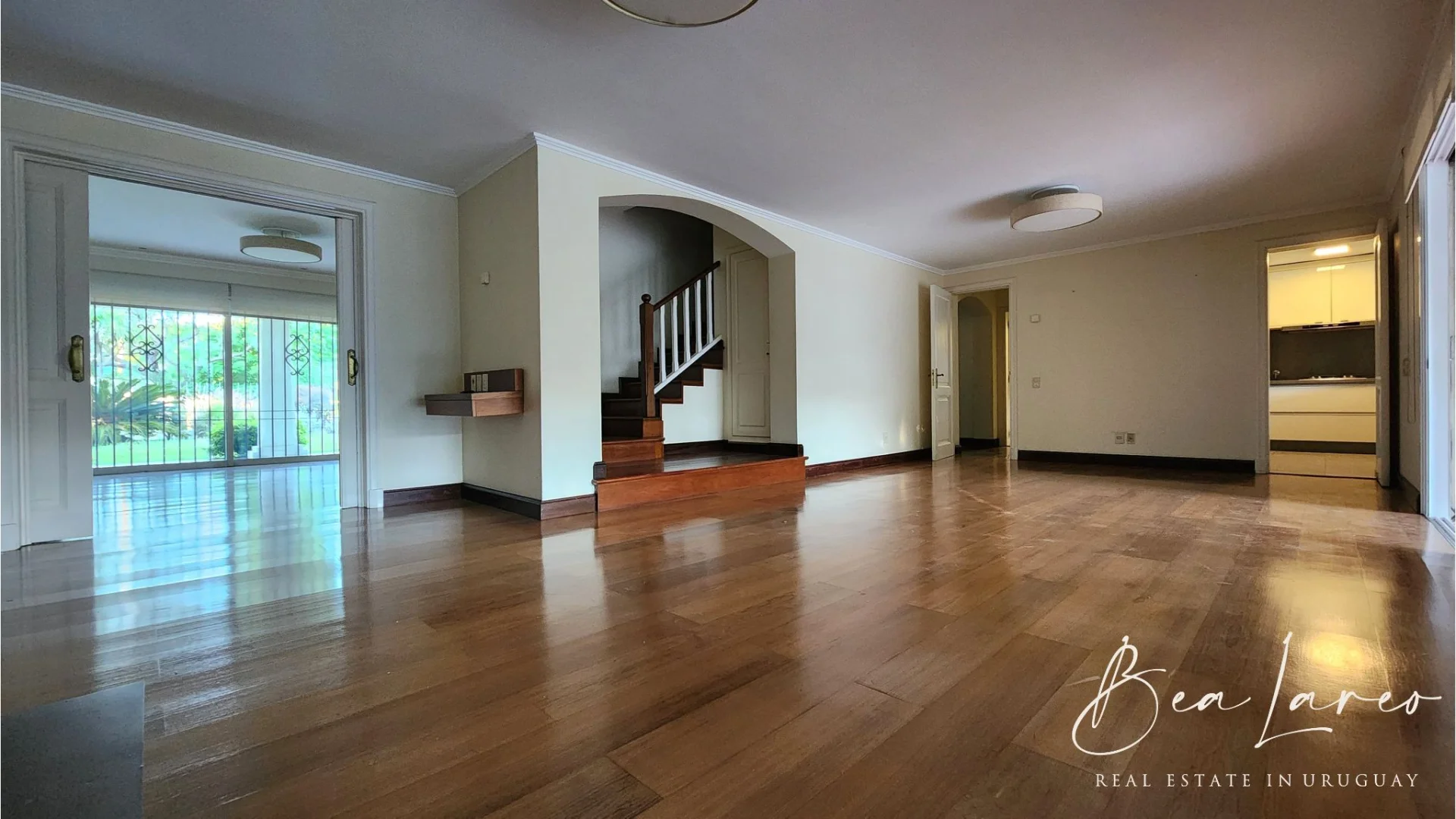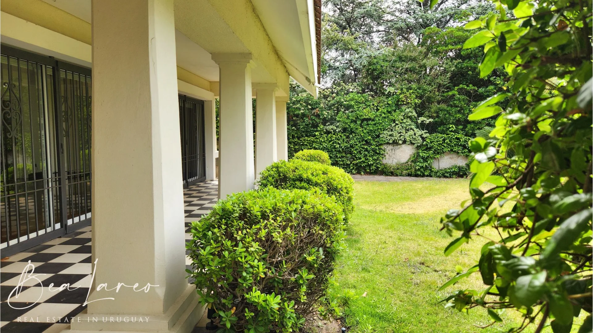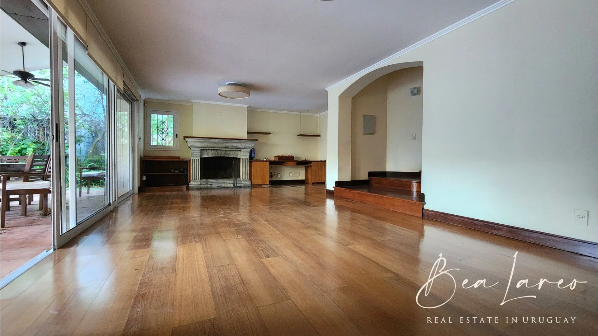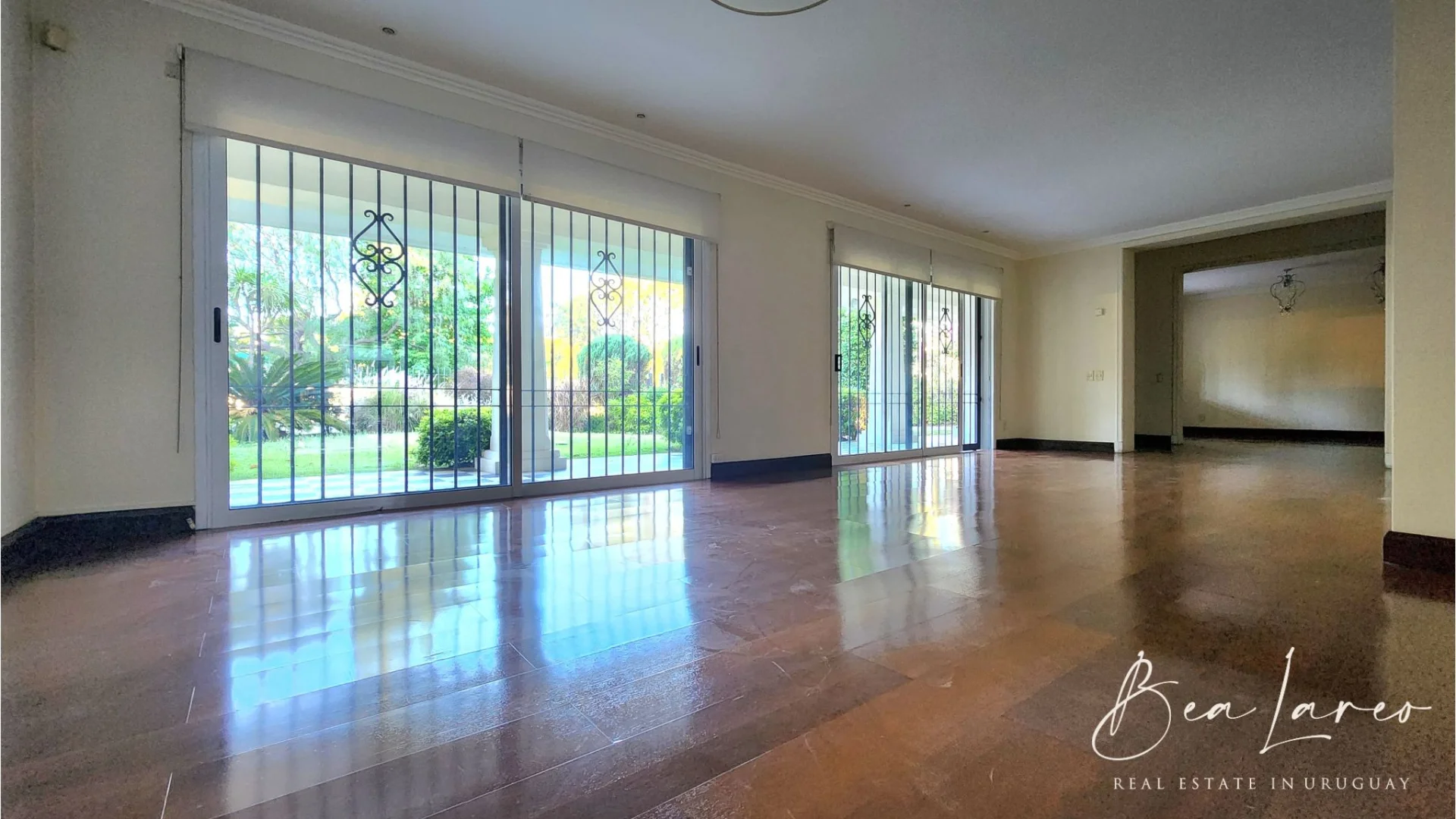 Amplia propiedad en Carrasco sur, próxima a la Rambla. Dispone de 500 m2 construidos en un terreno de 1.223 m2. En planta baja ofrece recepción, amplio living al frente, comedor, estar con estufa a leña vinculado a disfrutable galería con parrillero, cocina reciclada con isla, dormitorio y baño de servicio. En planta alta dispone de 4 amplios dormitorios, dos de ellos en suite (la suite principal con vestidor y baño con jacuzzi ), y dos dormitorios que comparten un baño. Calefacción por losa radiante y aires acondicionados. Gran barbacoa con parrillero y estufa a leña, kitchenette, 1 dormitorio y 1 baño completo (opción escritorio). Apartamento independiente o casa de caseros. Lavadero. Baño exterior. Jardín con gran piscina.
