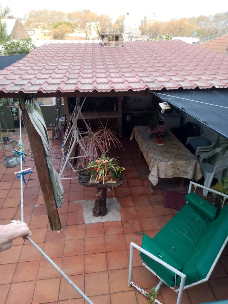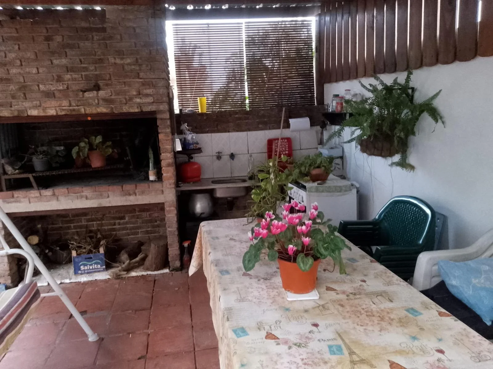 Parrillero con mesada y pileta de acero inoxidable, semi techado.