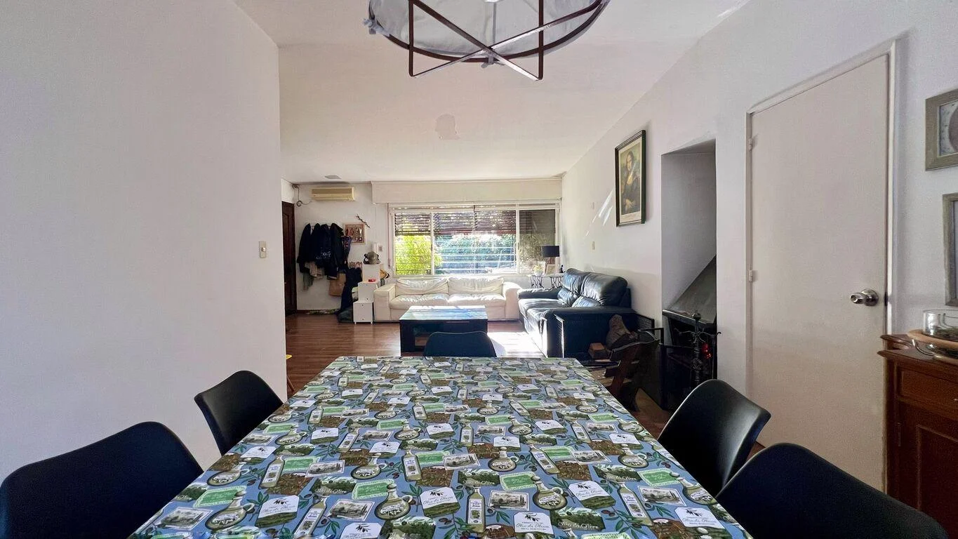 Living comedor con una buena estufa con salida al patio interno con parrillero.