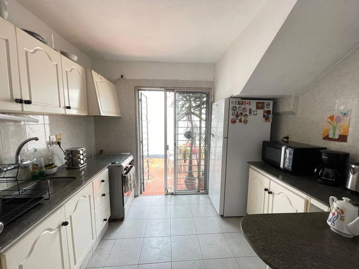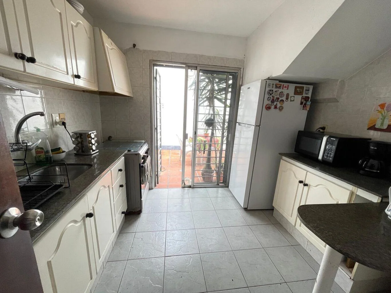 Cocina completa con barra - y salida al patio con parrillero