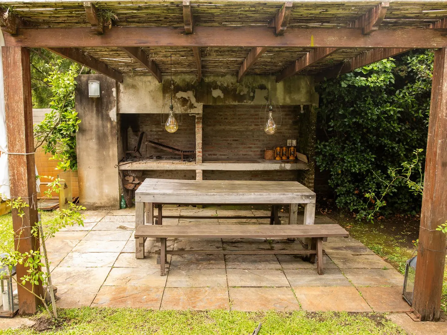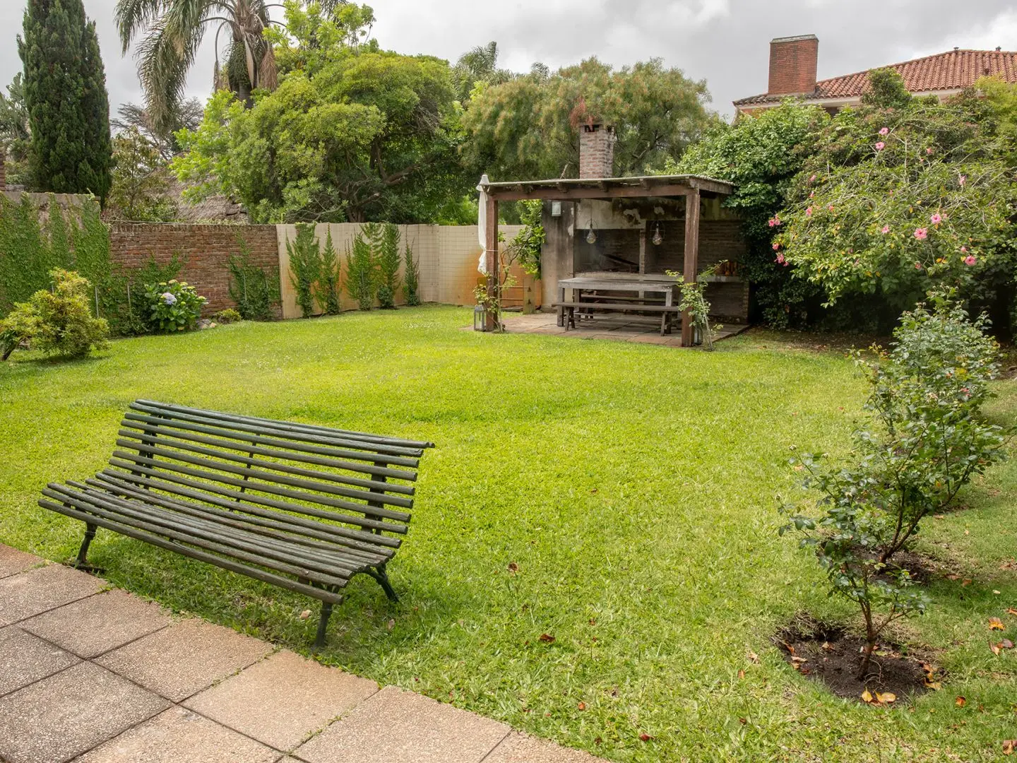 Clàsica casa proyectada por el Arq Faget Figari en el centro de Carrasco. Se desarrolla en dos plantas. En planta baja hall de ingreso, living con estufa a leña y salida a jardín del frente, comedor independiente, estar con estufa a leña y salida a jardín del fondo, toilette, cocina con office y servicio completo. En planta alta cuatro dormitorios (principal con terraza) y dos baños. Cochera para dos autos. Parrillero. Calefaccion (por losa radiante en planta baja y radiadores en planta alta). Equipos de AA en todos los ambientes. Jardín con riego.