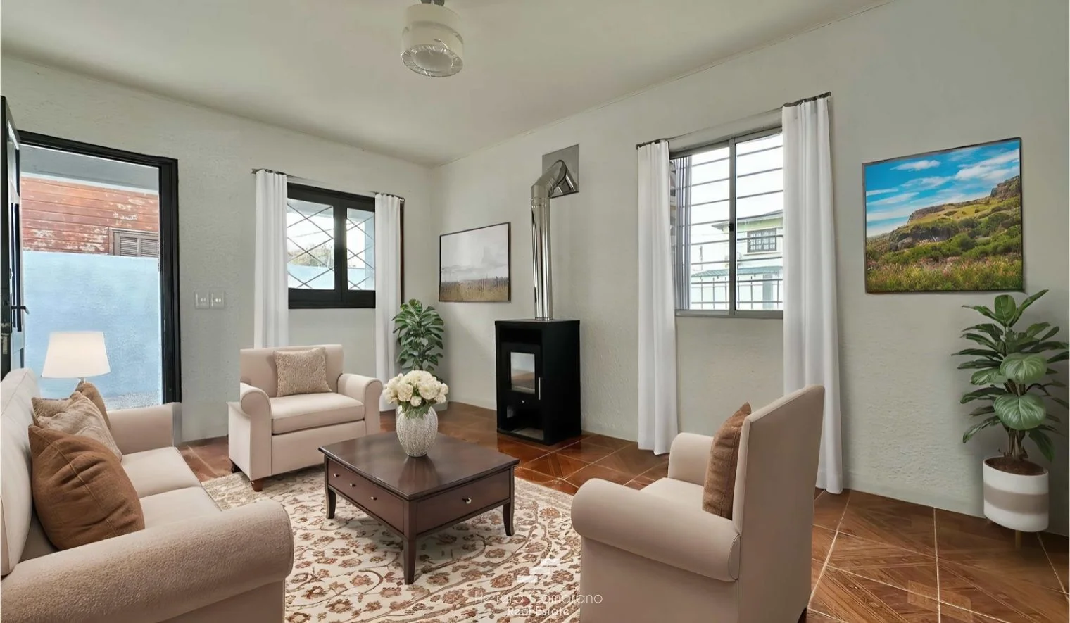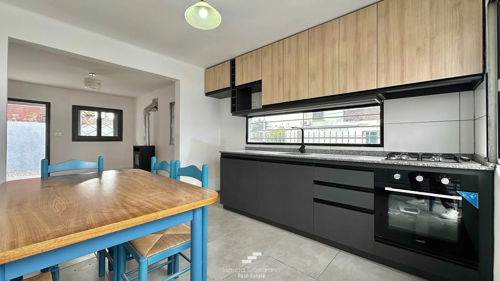 La vivienda reciclada de 64m2 cuenta con dos dormitorios, baño, cocina comedor, living con estufa a leña, parrillero y un garaje de 24m2. Toda la instalación de agua corriente es nueva al igual que la instalación eléctrica, el equipamiento de la cocina esta a estrenar y posee anafe a gas, horno eléctrico y campana de extracción.