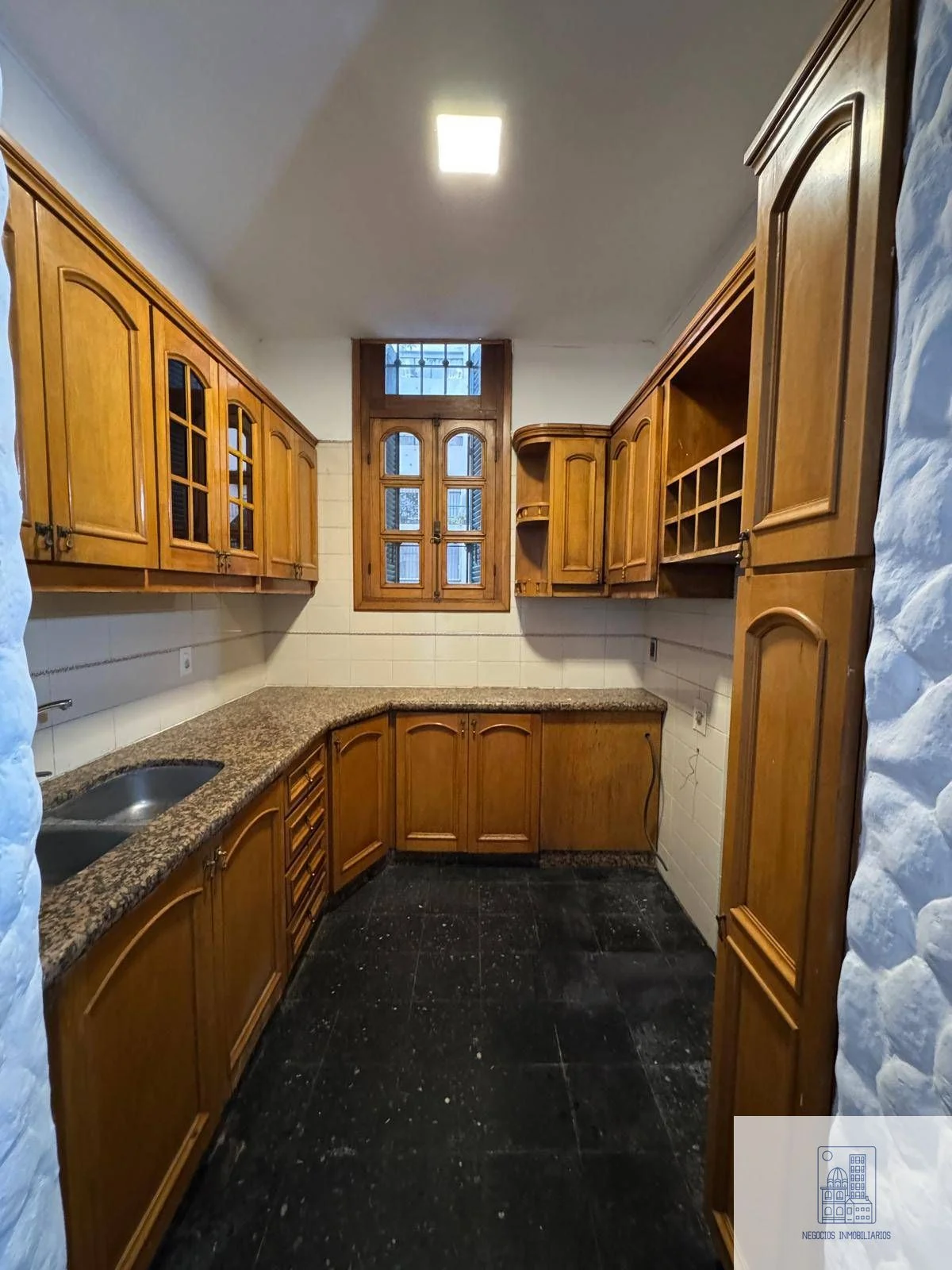 • Amplio hall de distribución, estar o comedor diario, cocina definida con profusión de placares, alacena, mesada de granito tipó L con doble pileta de acero inox.
