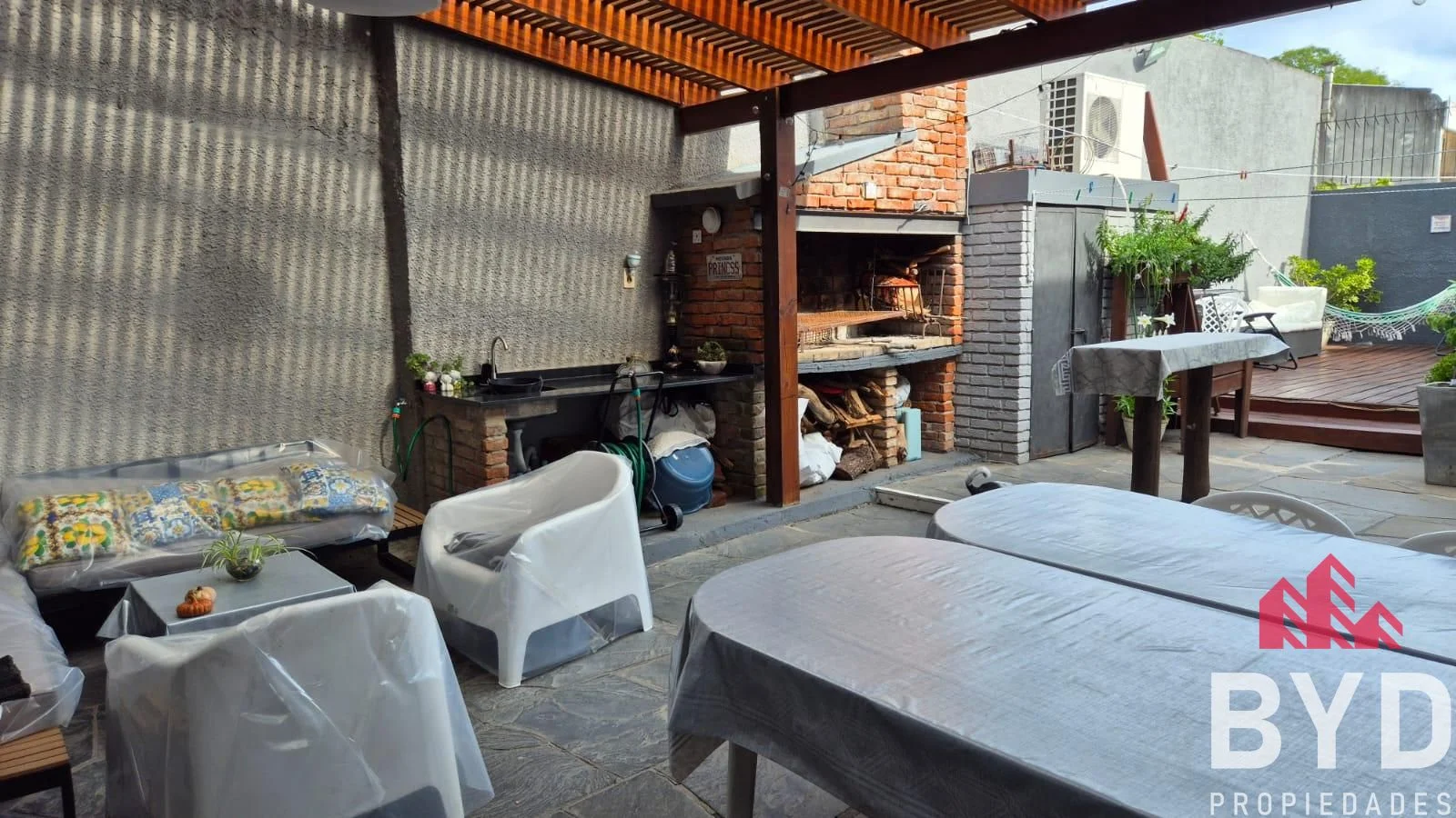 El exterior de la propiedad es un verdadero oasis, que presenta un hermoso fondo con una piscina climatizada y deck para las mañanas soleadas. Cuenta con una barbacoa semitechada con parrillero, ideal para reuniones al aire libre. Con una superficie total de 289 m2, de los cuales 115 m2 son cubiertos y 174 m2 descubiertos, esta casa ofrece amplios espacios y un patio verde que invita al relax. La cochera descubierta proporciona comodidad adicional, y la propiedad está equipada con todos los servicios necesarios, como agua corriente, internet, aire acondicionado y luz.
