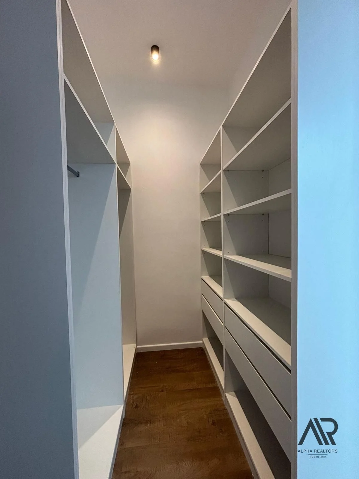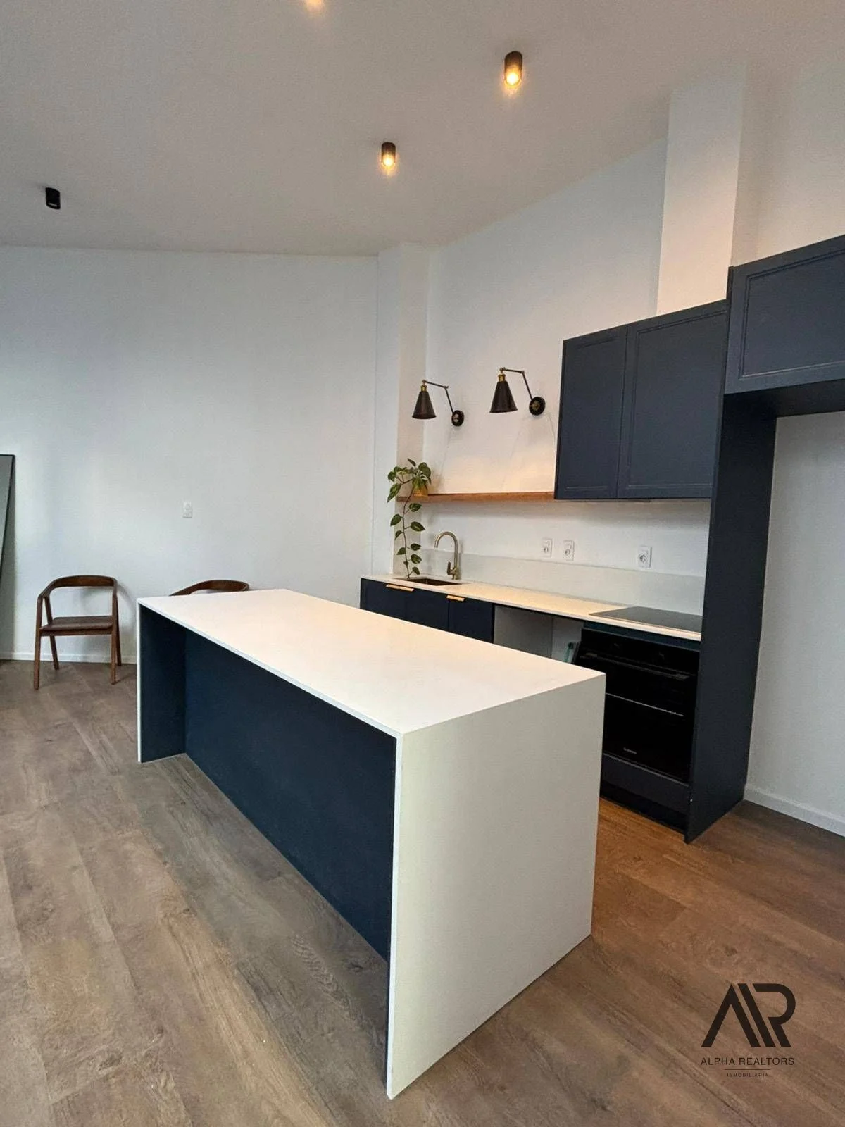 La cocina, de concepto abierto, está equipada con mobiliario laqueado, horno, anafe, extractor y espacio destinado a lavavajillas. Una amplia isla de silestone blanco se convierte en el centro del ambiente, ideal tanto para cocinar como para compartir.