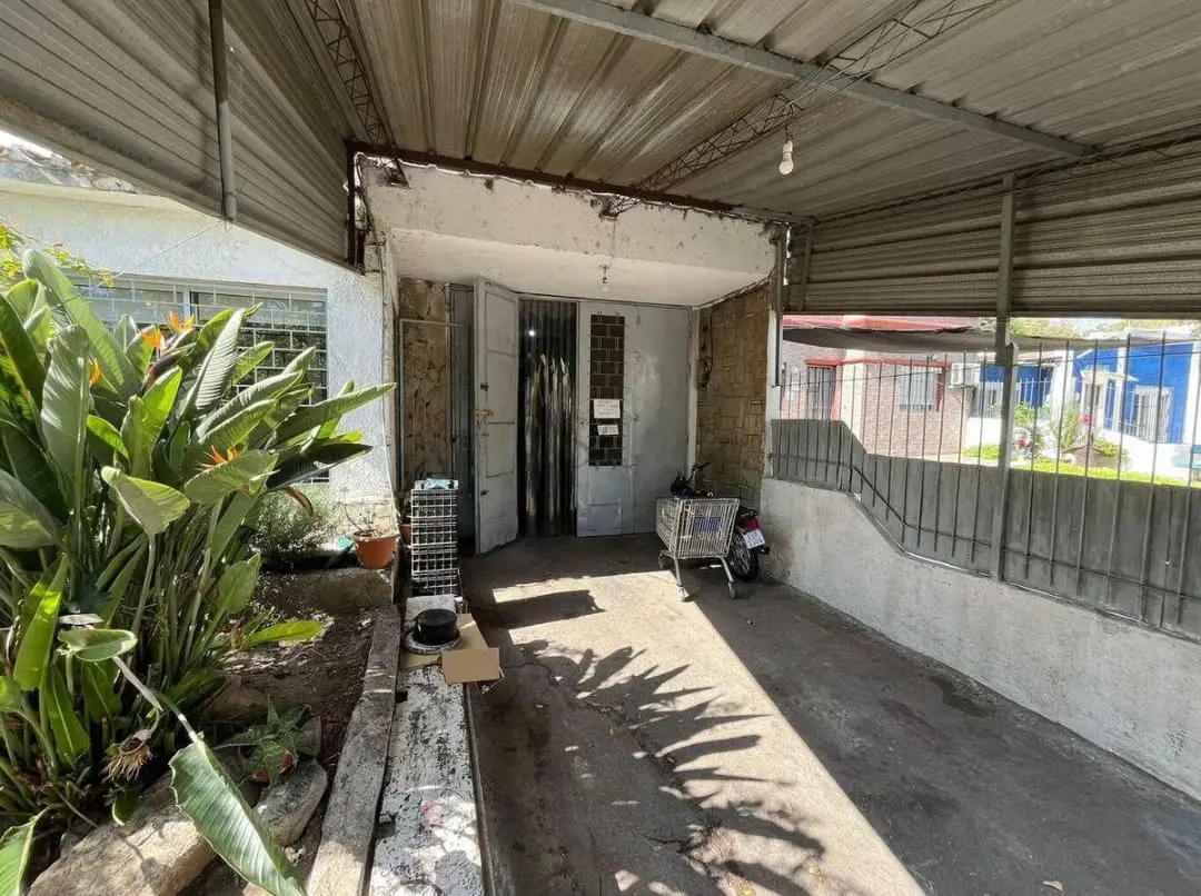 La propiedad ofrece jardín al frente, cochera techada y garaje cerrado para dos autos, actualmente utilizado como comercio.