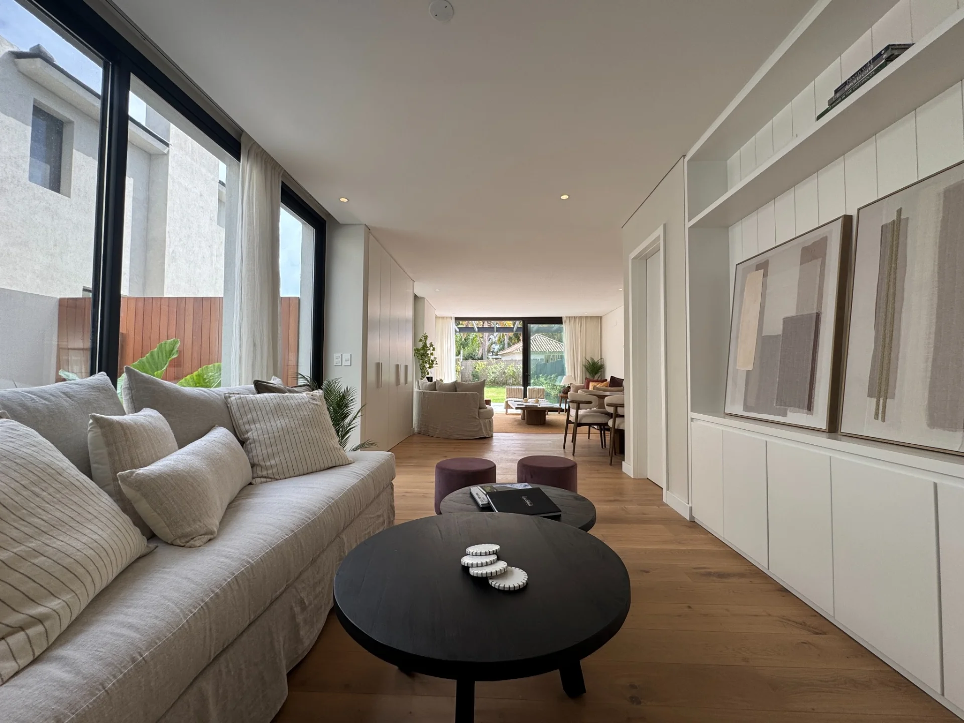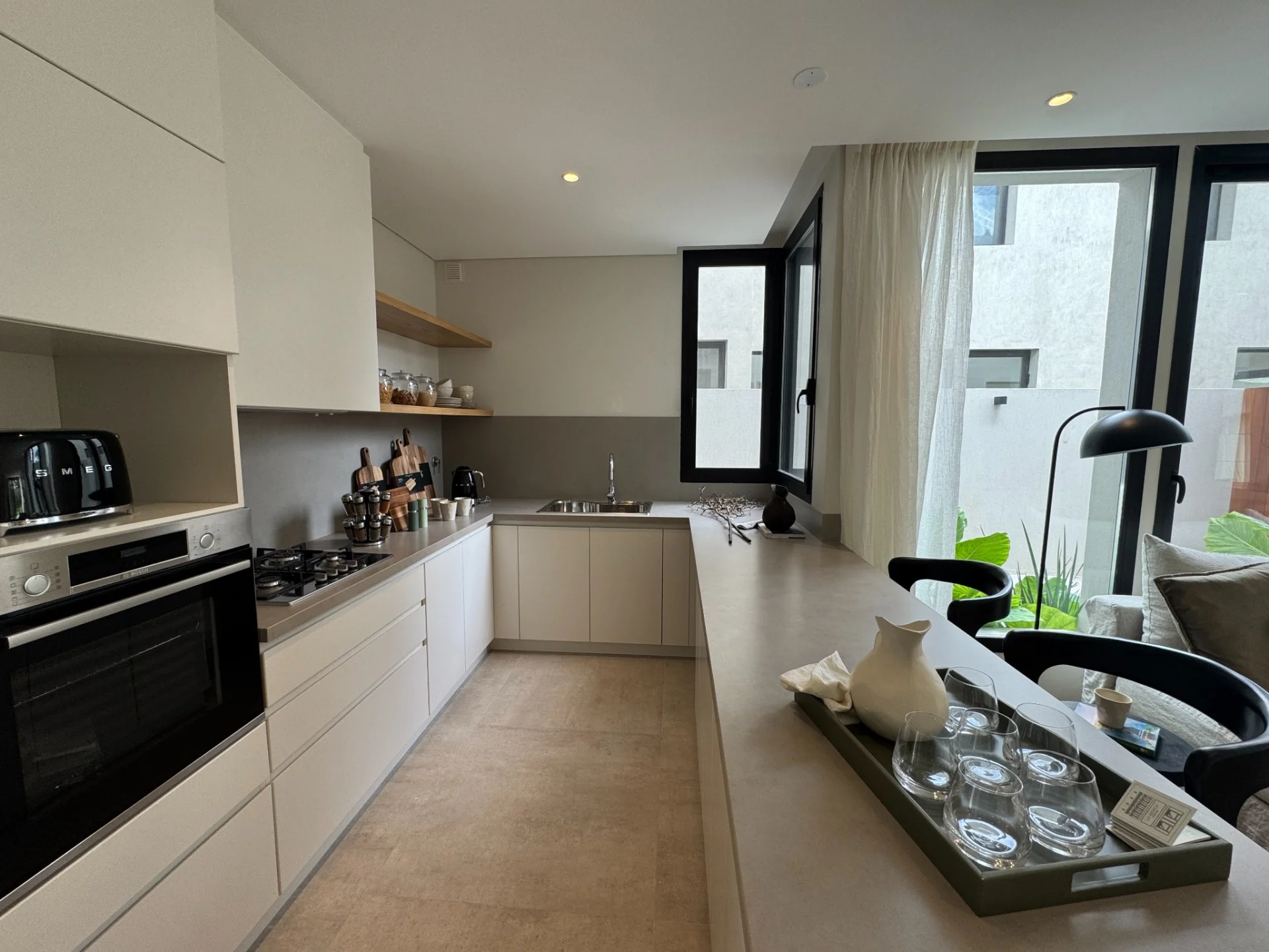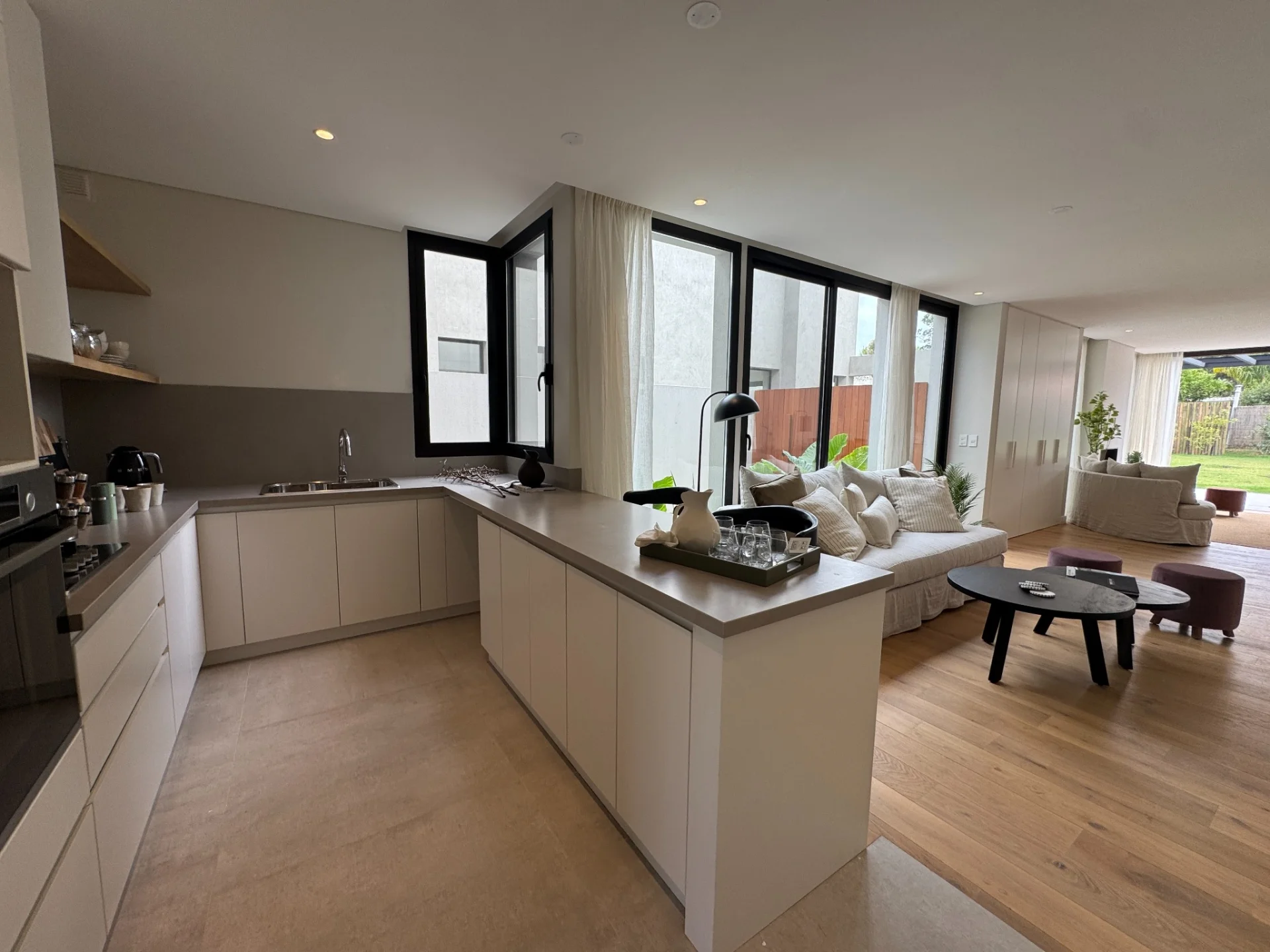 Moderna PH de diseño a estrenar en venta en Barrio San Nicolás, una zona de gran seguridad, con todos los servicios y colegios cercanos. Ubicada en un punto estratégico, de fácil acceso. En planta baja se accede por una entrada lateral a través de un patio interior con paisajismo. Cuenta con living-comedor con salida a una amplia terraza con parrillero y un lindo jardín orientado al norte. Dispone además de un estar integrado (con posibilidad de independizarse) y cocina integrada con barra. Bajo escalera con espacio de guardado- Área de lavadero con baño de servicio y entrada independiente. En el entrepiso se ubica un toilette de visitas. En planta alta, un cómodo hall de distribución con placard conduce a tres dormitorios: una master suite con vestidor y baño completo, y dos dormitorios secundarios que comparten un baño completo compartimentado. Todos los dormitorios cuentan con persianas motorizadas y excelentes placares. La propiedad se destaca por su excelente orientación, que garantiza gran luminosidad en todos sus ambientes. Construida con materiales de primera calidad, ofrece además amplios espacios de guardado. Aberturas con DVH. Calefacción por losa radiante con caldera a gas. Previsión para aire acondicionado en todos los ambientes. Pisos de madera. Jardín de buen tamaño, con espacio para instalar piscina. Cochera para dos autos. Barrio con seguridad 24 horas, canchas de tenis, pádel y clubhouse. Agende su visita. Mercedes Arocena Bienes Raíces