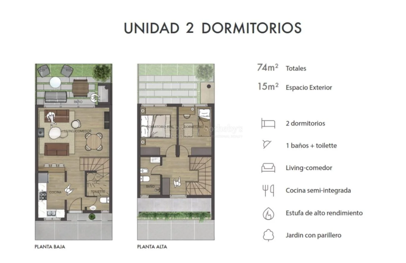 Cada detalle ha sido pensado para maximizar el confort: toilette de recepción, estufa de alto rendimiento y una planta que equilibra diseño y practicidad en 74 m² interiores, complementados por 15 m² de expansión exterior.