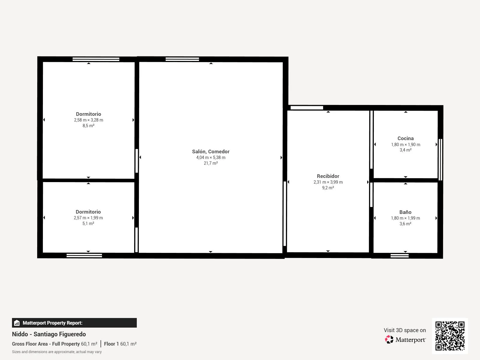 Cuenta con dos dormitorios, uno de ellos de menor tamaño, con posibilidad de ampliación.