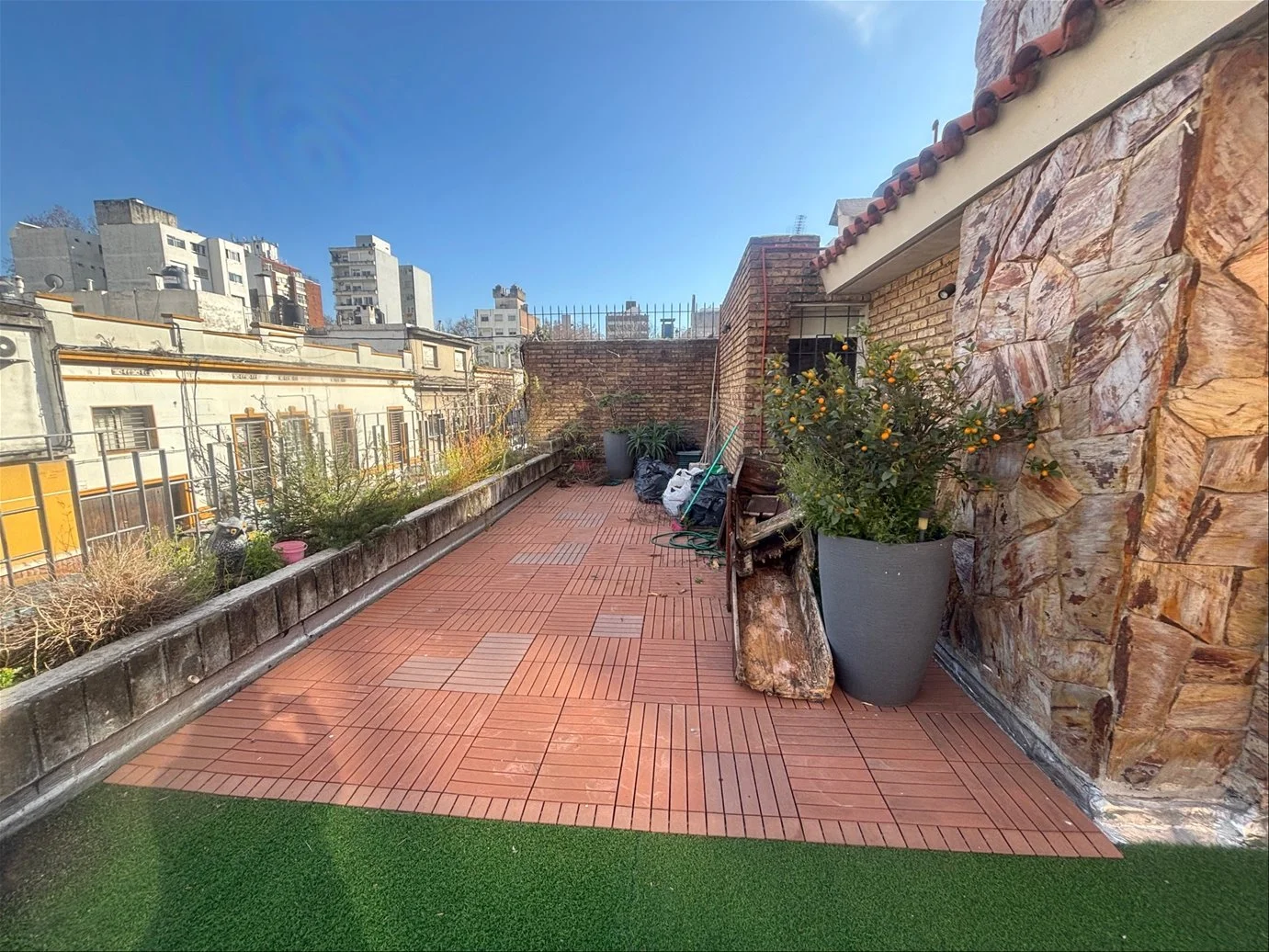Al frente cuenta con una gran terraza.