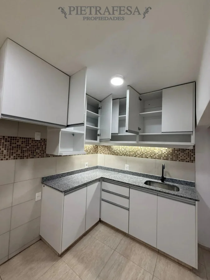 Cocina definida con placard sobre y bajo mesada.