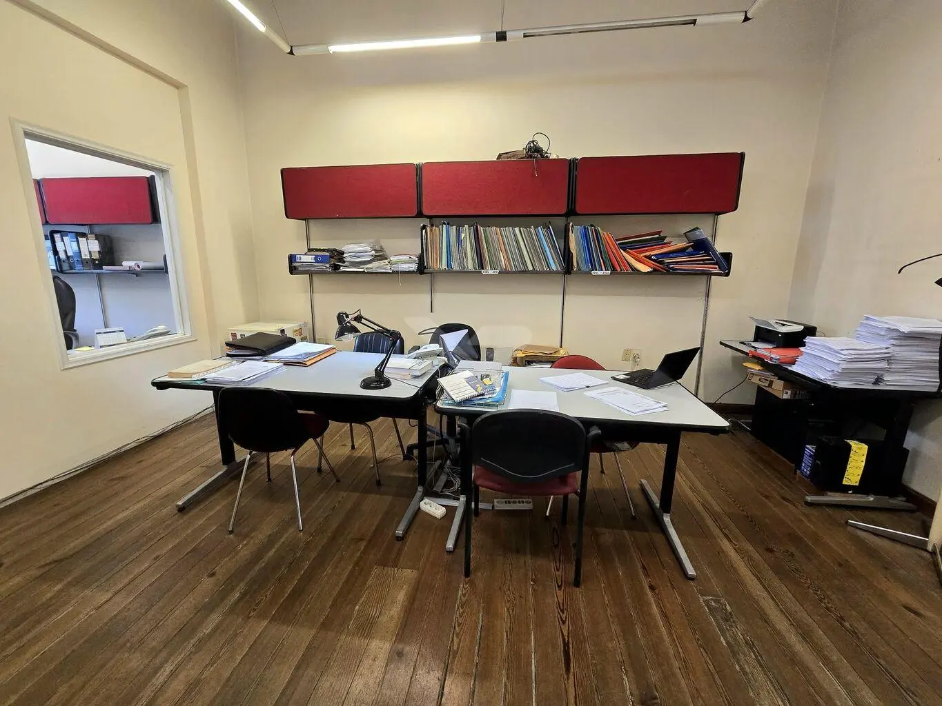 Centa con 4 oficinas y una sala de reuniones, baño con cocina,