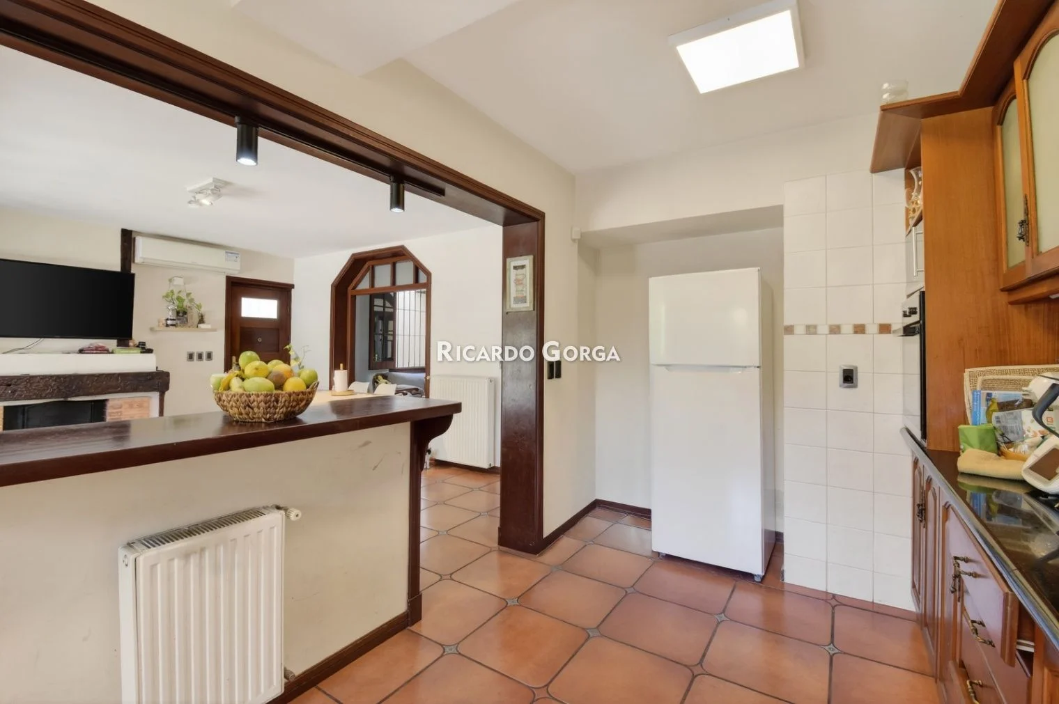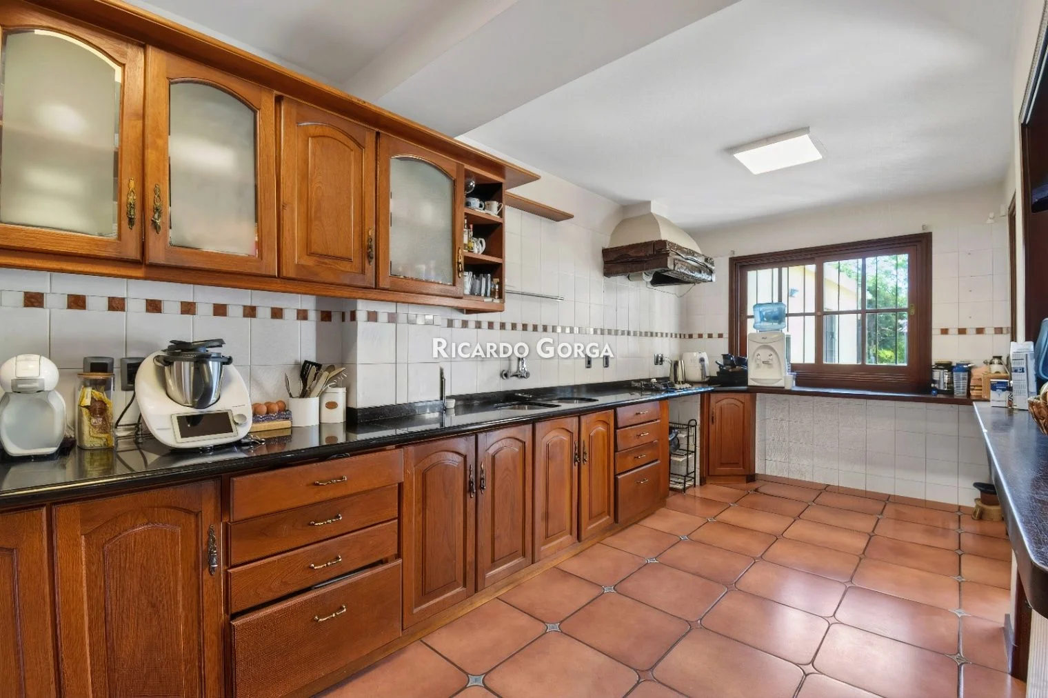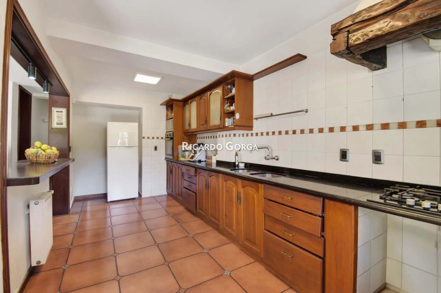 Cocina con desayunador integrada a estar diario, piso loyota, mesada de granito con profusión de placares bajo y sobre mesada, horno y anafe