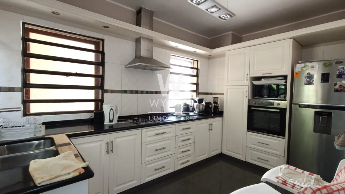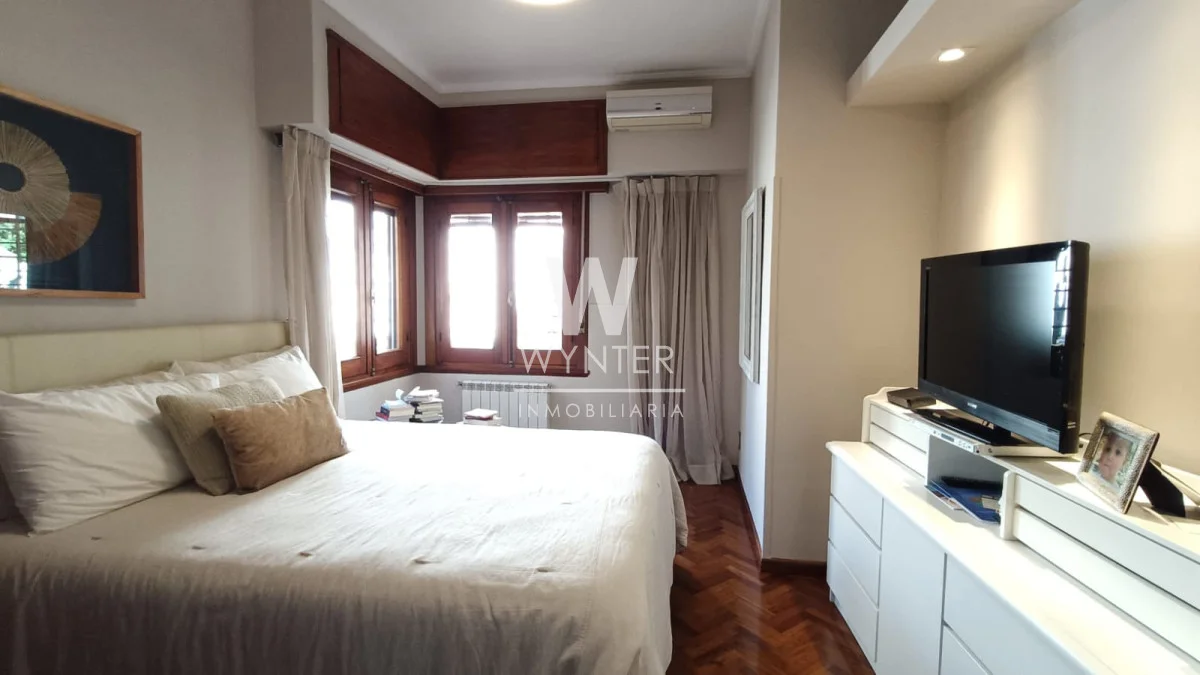 Cuenta con 3 dormitorios, 4 baños, dependencia de servicio, estar, amplia cocina con comedor, y muy lindo fondo verde con barbacoa.