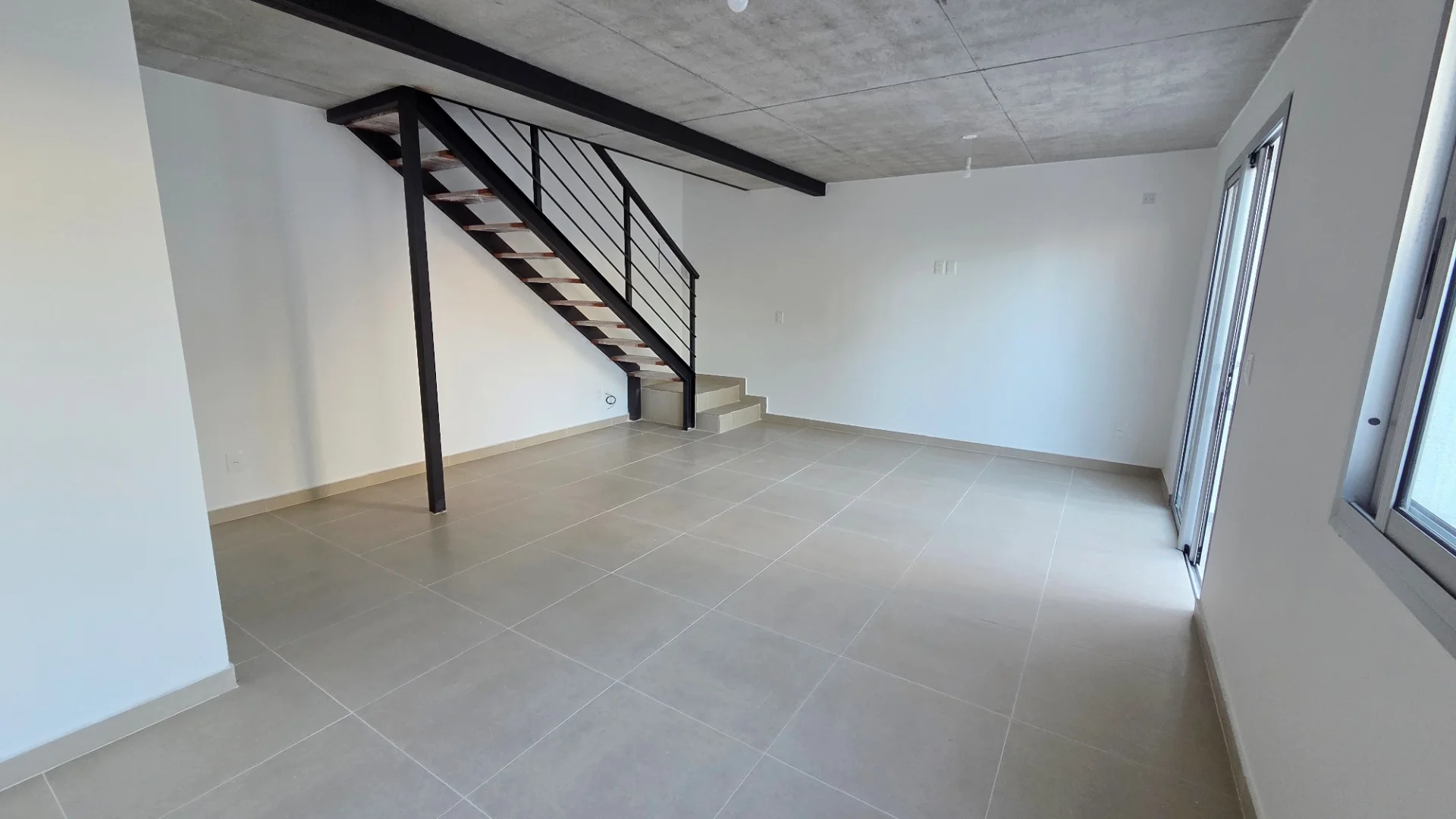 Acceso a planta alta por moderna escalera en hierro y madera. Dos dormitorios al frente de buen tamaño con ventana en aluminio, cortina de enrollar y pisos flotantes + baño completo con lindas terminaciones .