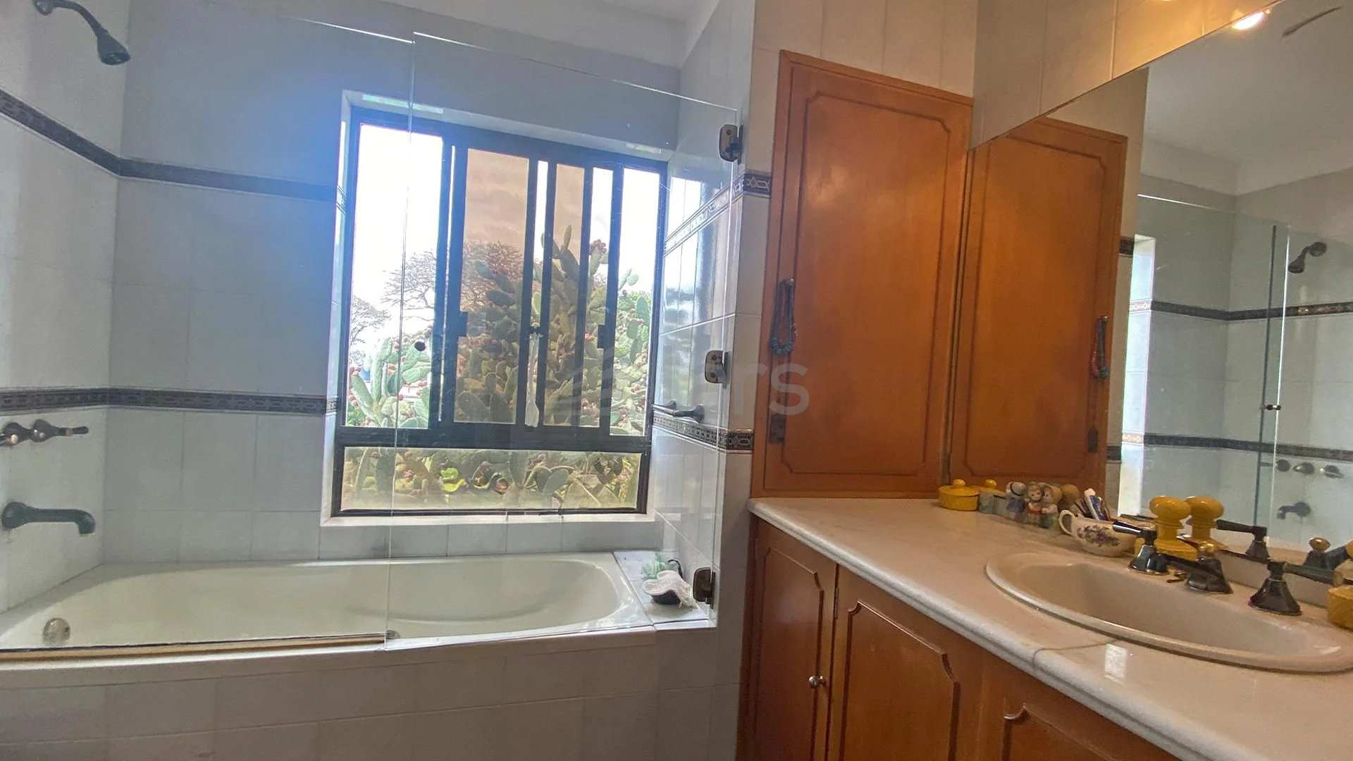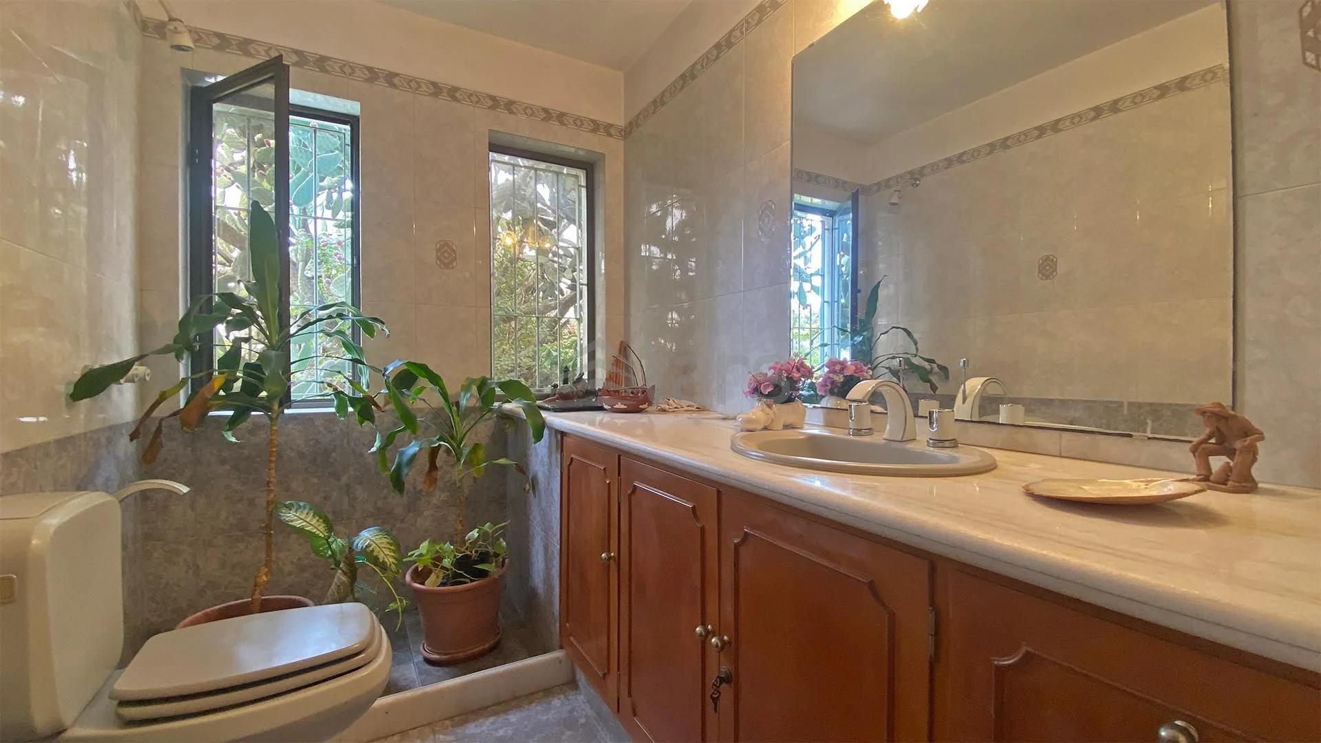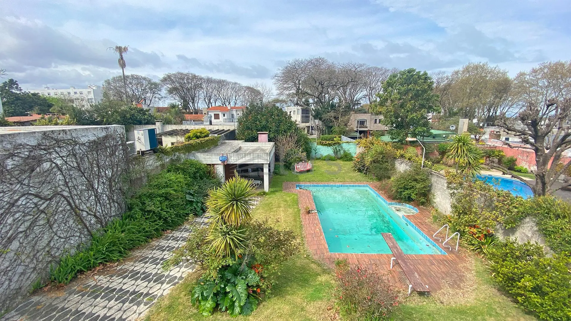 El exterior cuenta con un amplio jardín, piscina y un patio con barbacoa cerrada equipada con parrillero y baño. La propiedad incluye garaje techado con lavadero y baño completo adicional.