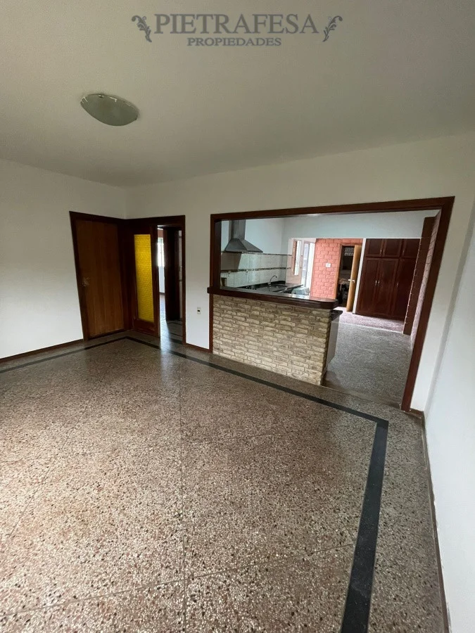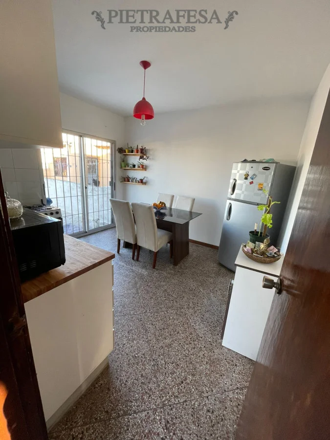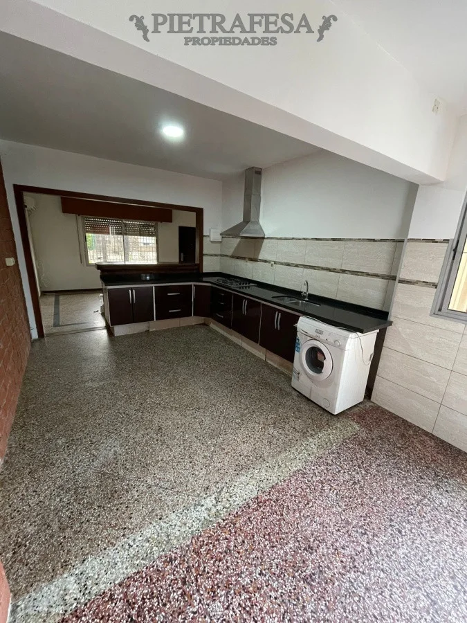Casa en planta baja con 3 dormitorios súper amplios, uno de ellos con placard. Un baño, living comedor y cocina definida con salida al patio trasero. La cocina es amplia, hecha a medida con muy buen almacenamiento de sus placares, barra desayunadora, anafe empotrado y campana.