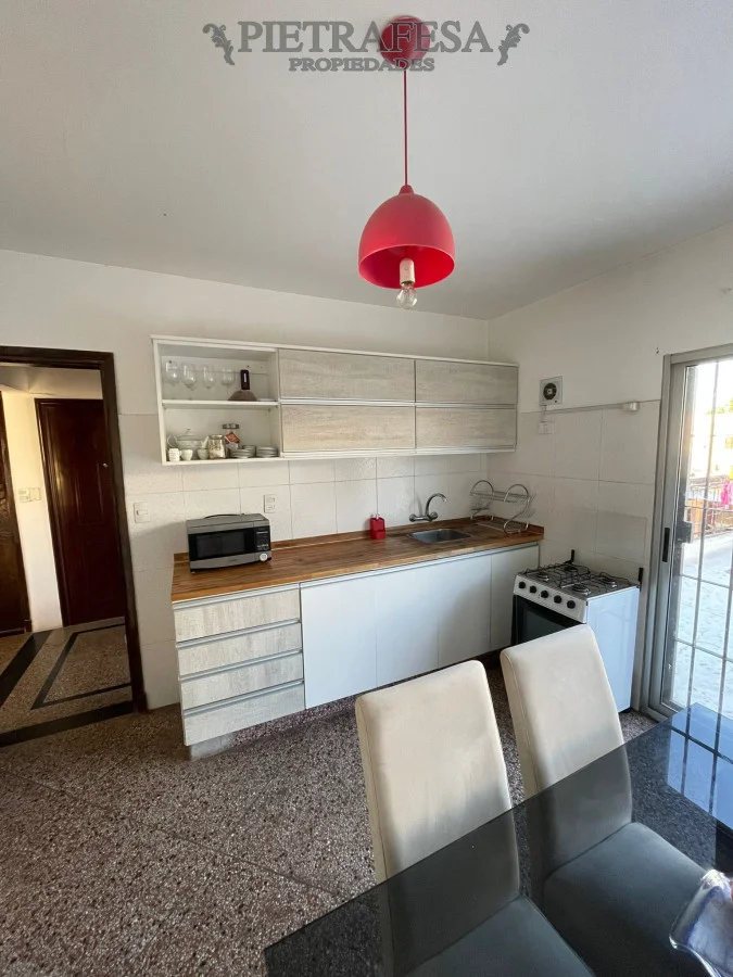 En planta alta apto independiente con mucha luz natural. Un dormitorio súper amplio con aire acondicionado, living comedor, un baño y cocina definida también hecha a medida. En la cocina hay un ventanal grande con rejas que da salida a la terraza trasera.