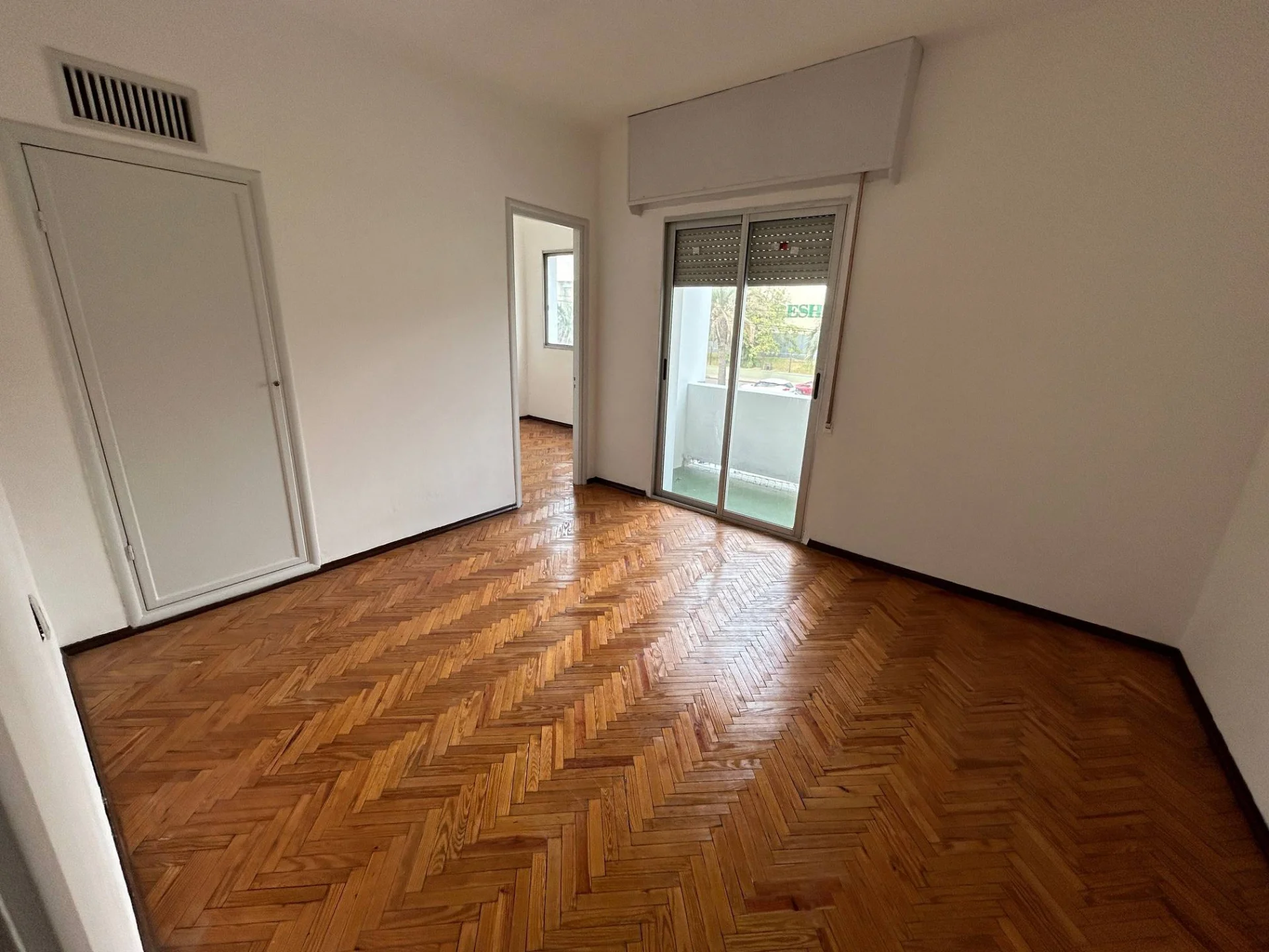 2 dormitorios corridos, uno con placard y balcon al frente. El otro es chico