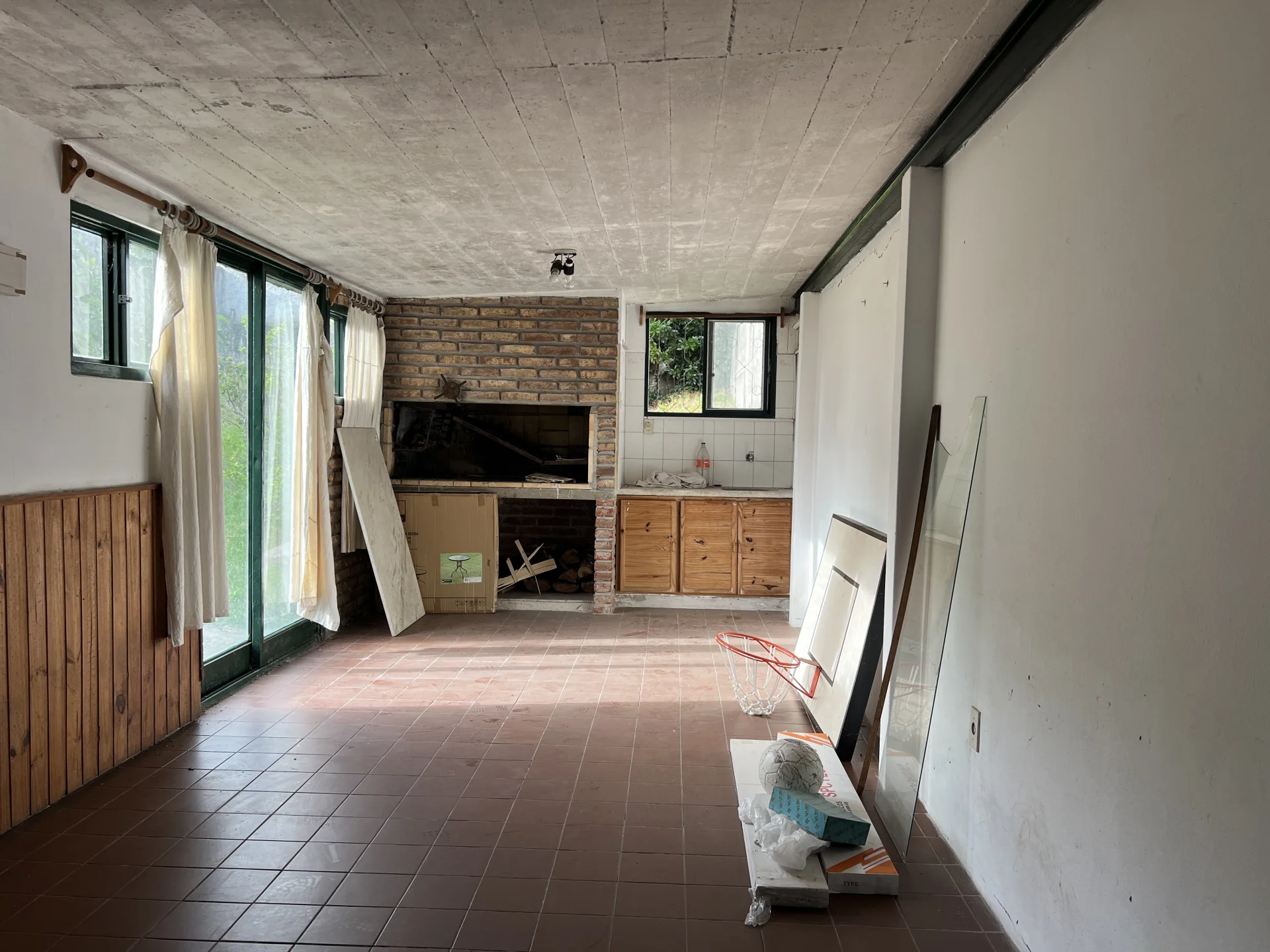Planta baja: jardín al frente y rejas de hierro con entrada para varios vehículos. Hall de entrada, living-con estufa a leña, habitación tipo escritorio u otro dormitorio, cuarto de baño completo, cocina con entrada independiente y salida al gge y el mismo fondo. Garage grande y barbacoa a continuación del mismo.