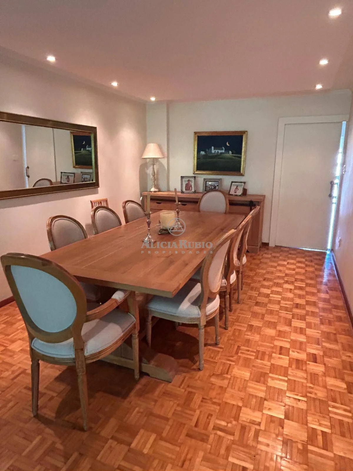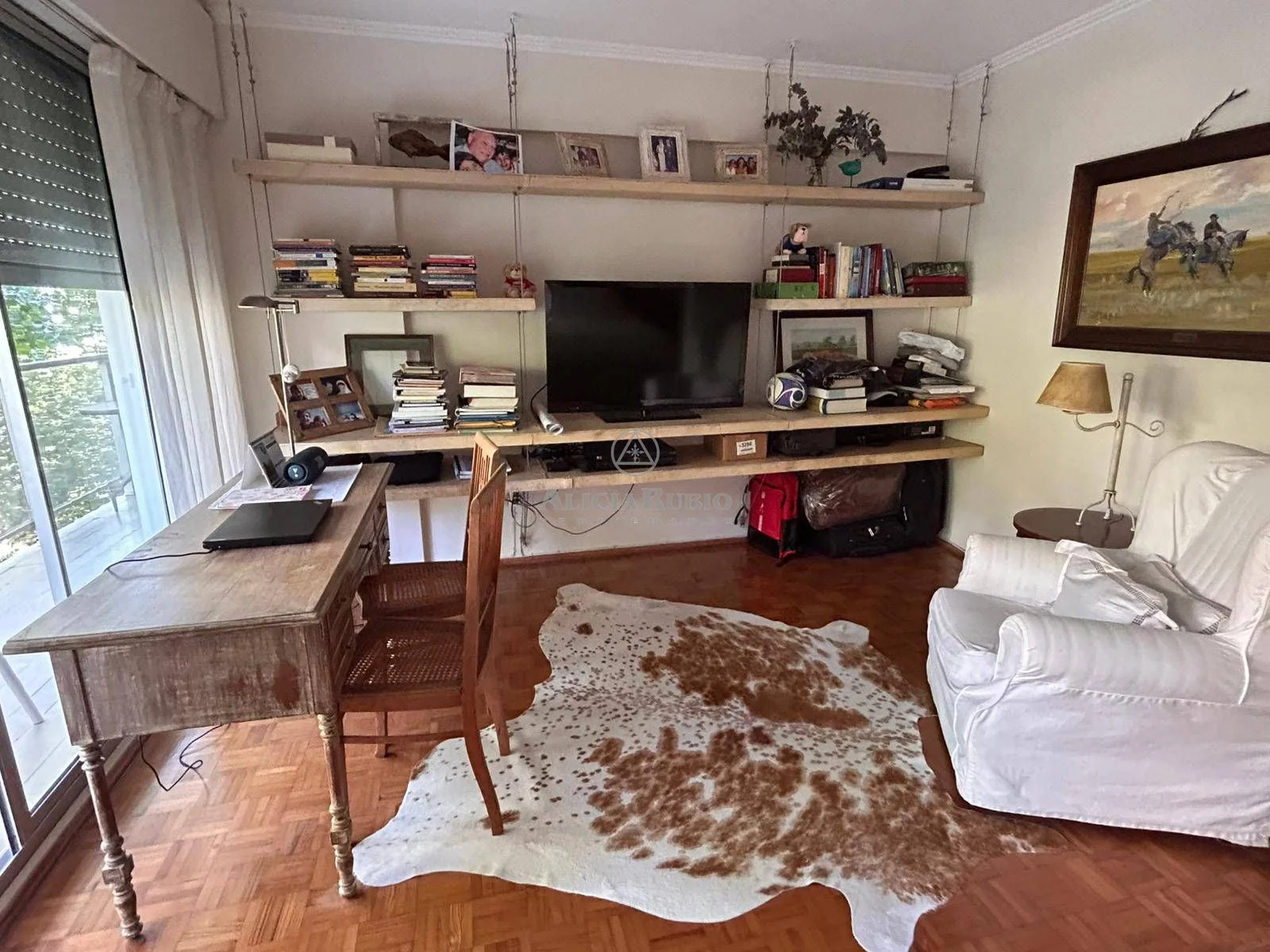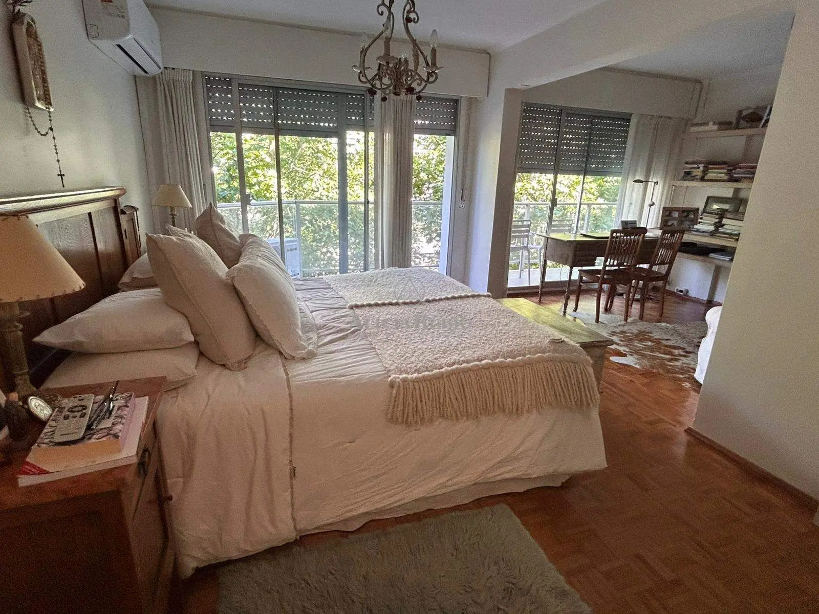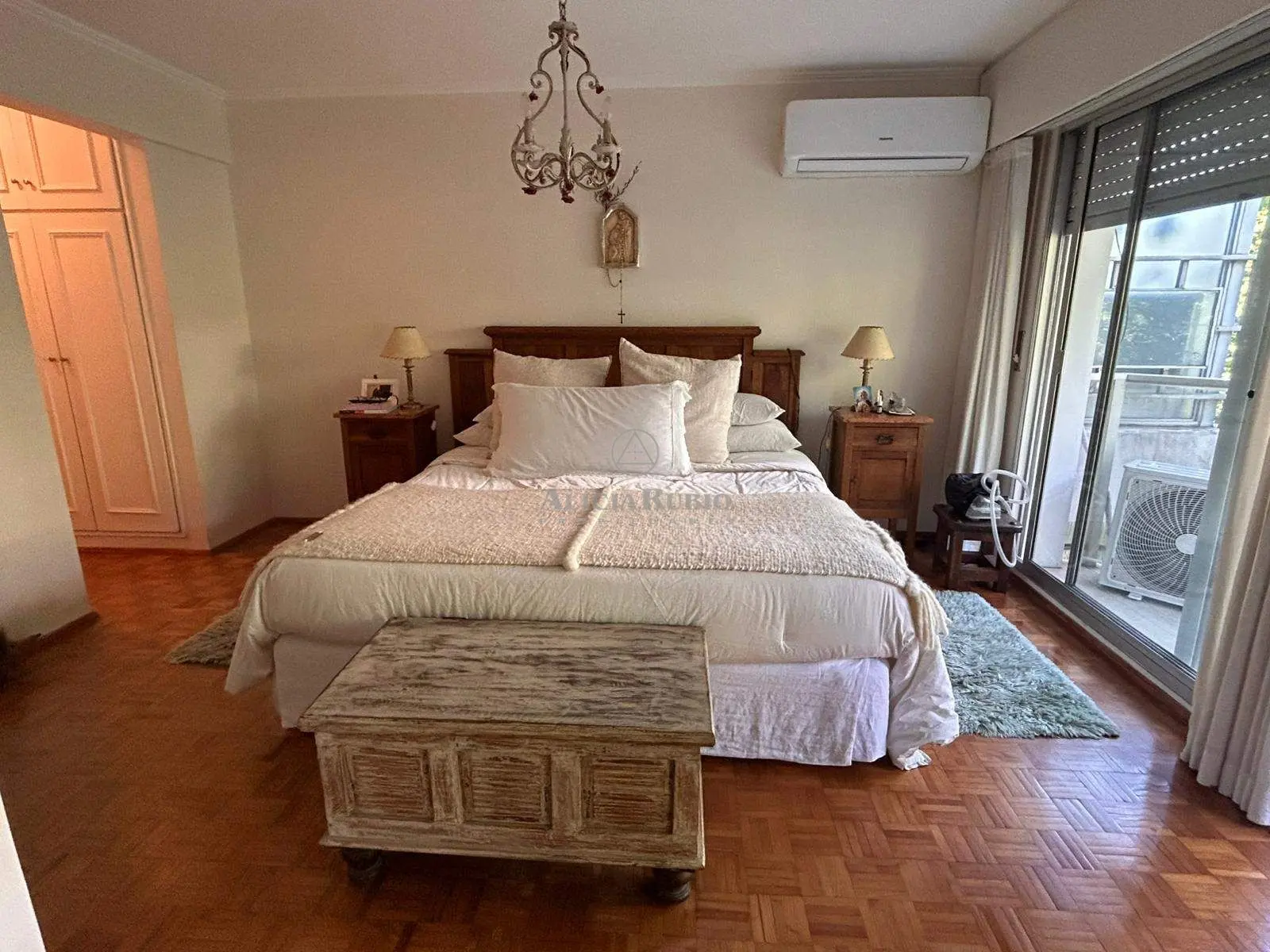 Living comedor con salida a balcon. Estar definido con Parrillero(extractor industrial) integrado a cocina con isla y muchos placares Baño Social. 4 dormitorios con placares(2 al frente), 3 baños (2 completos y 1 social), Dormitorio y baño de servicio.