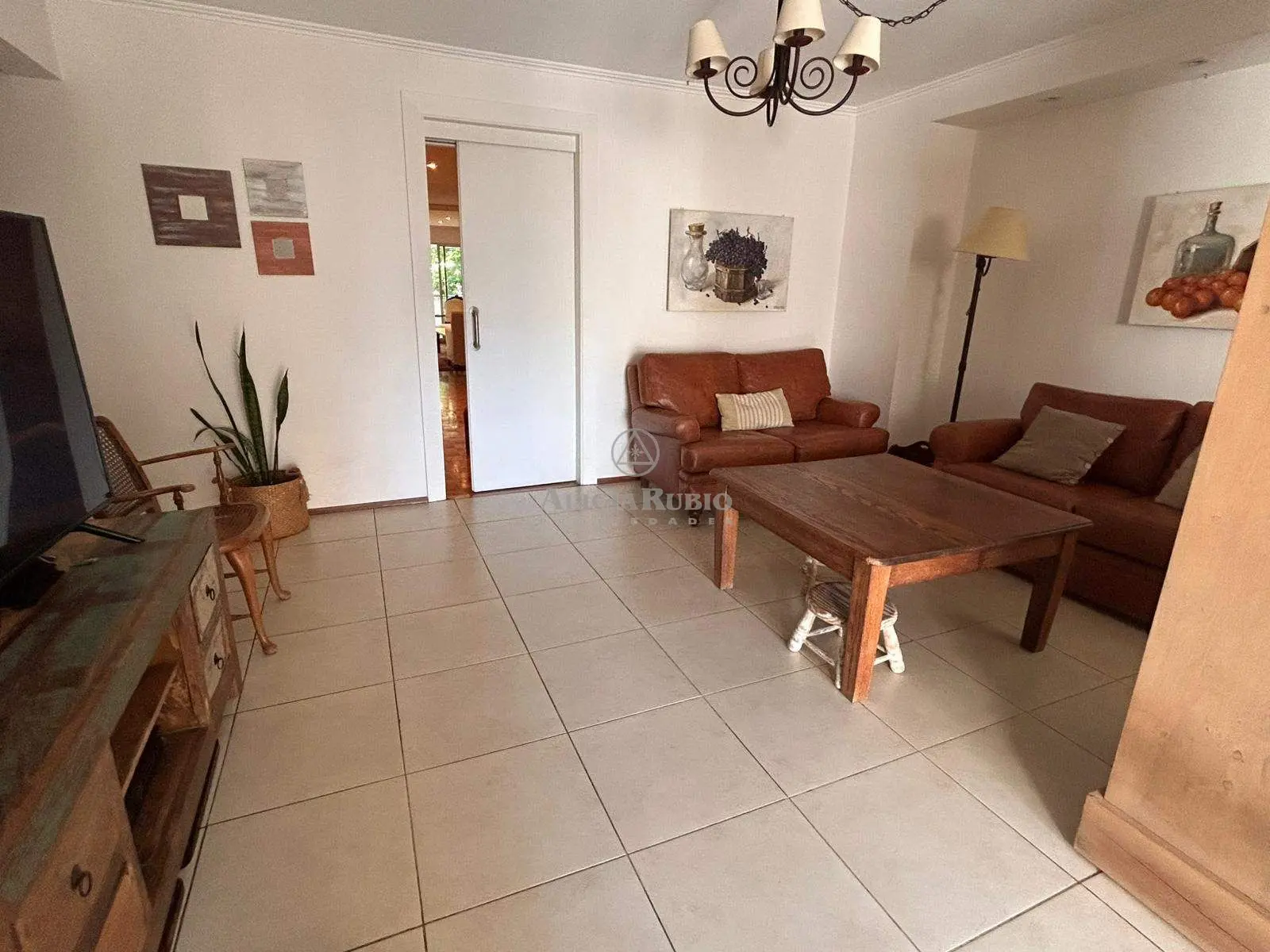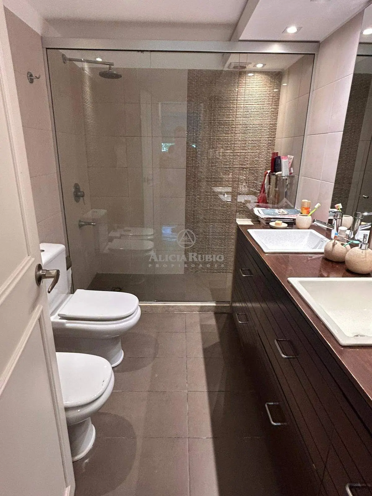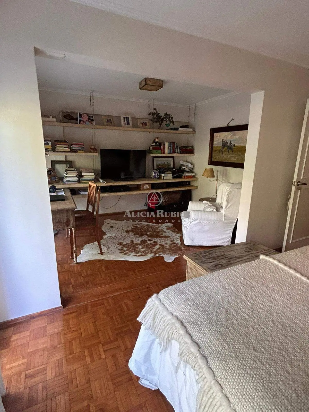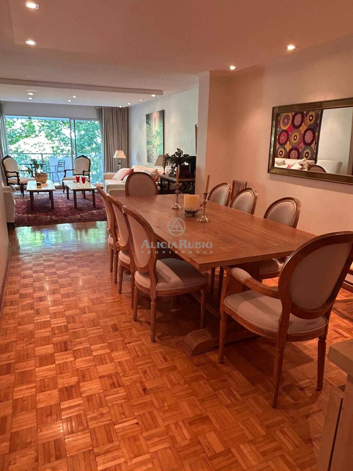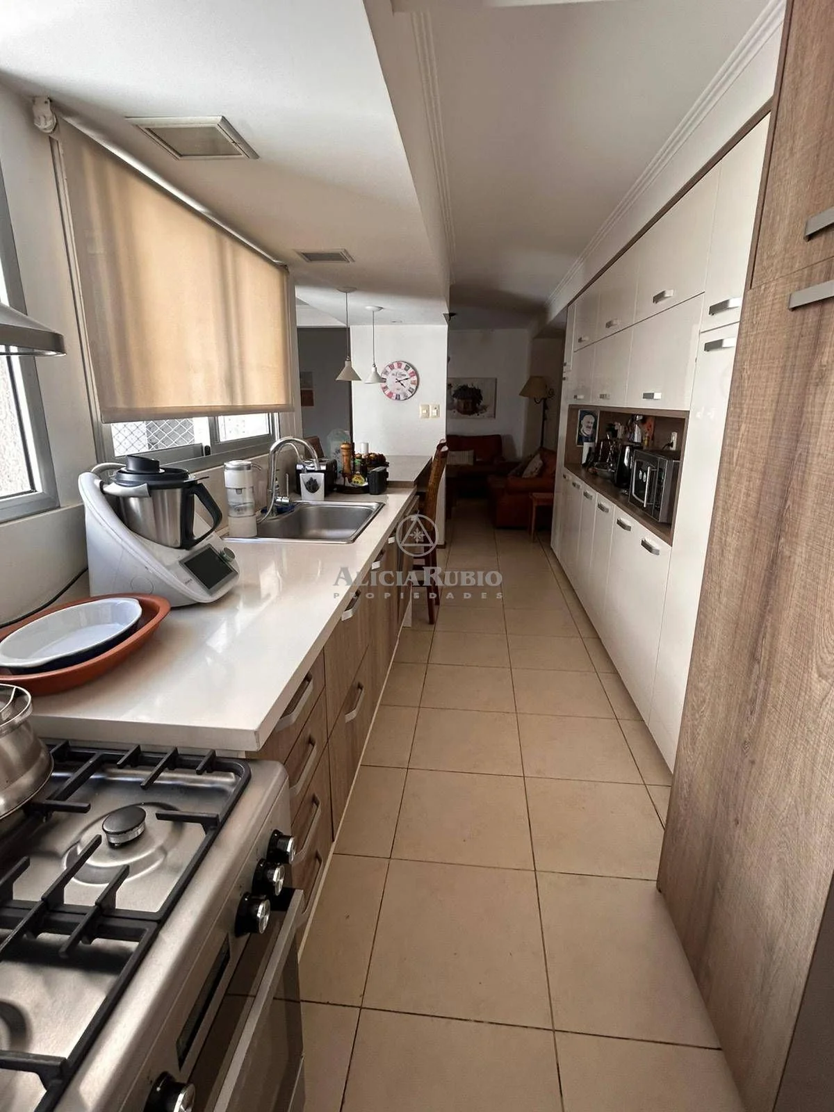 Living comedor con salida a balcon. Estar definido con Parrillero(extractor industrial) integrado a cocina con isla y muchos placares Baño Social. 4 dormitorios con placares(2 al frente), 3 baños (2 completos y 1 social), Dormitorio y baño de servicio.