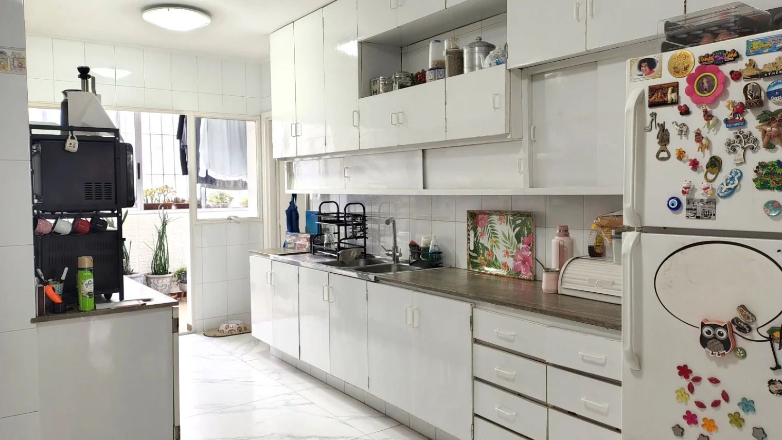 La cocina, de gran tamaño, está equipada con una doble mesada, placares tanto aéreos como bajo mesada, un comedor diario y acceso a una terraza lavadero cerrada. El dormitorio principal, también ubicado al frente, cuenta con baño en suite y vestidor, mientras que en la parte posterior se encuentran tres dormitorios adicionales que comparten un baño completo. Además, se incluye un dormitorio de servicio con un tercer baño. La calefacción por losa radiante asegura un confort óptimo durante todo el año.